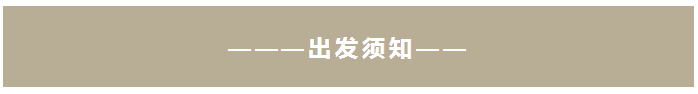 行程车程较长,路上会有盘山公路,请大家备好晕车药/贴。外出旅游,堵车不可避免,请大家做好心里准备。