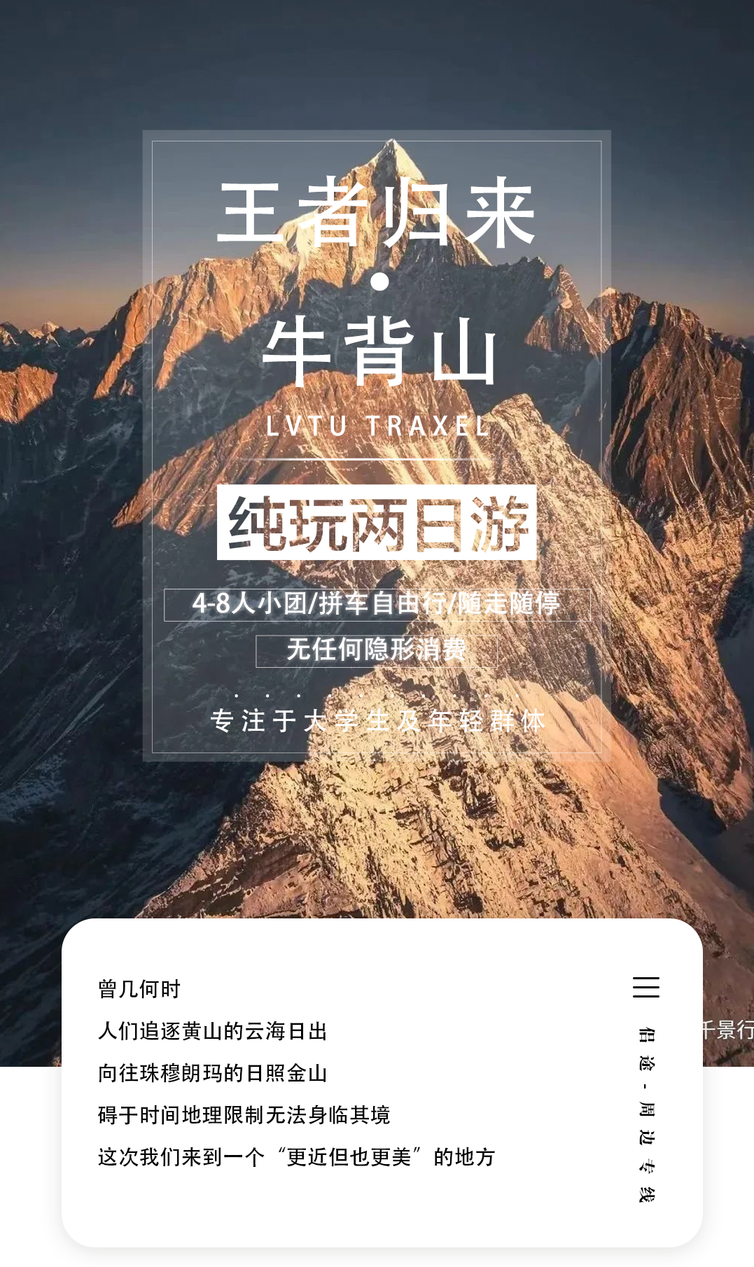 【拼包车出行 | 自由安排 | 牛背山两日直通车】360°观景平台,封山6年王者归来!