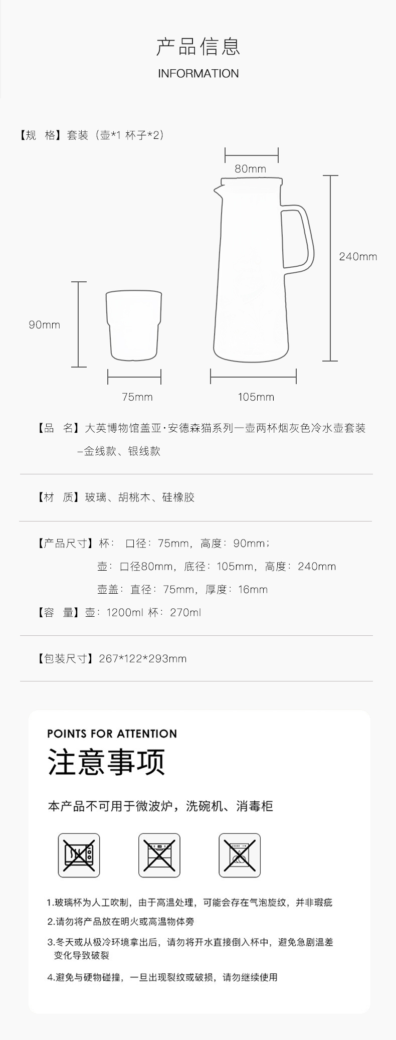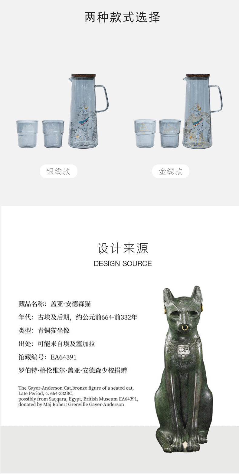 大英博物馆 盖亚·安德森猫系列 一壶两杯 烟灰色 冷水壶 套装 金线款 银线款 生日礼物礼盒 节庆礼物