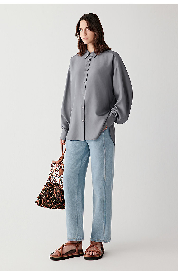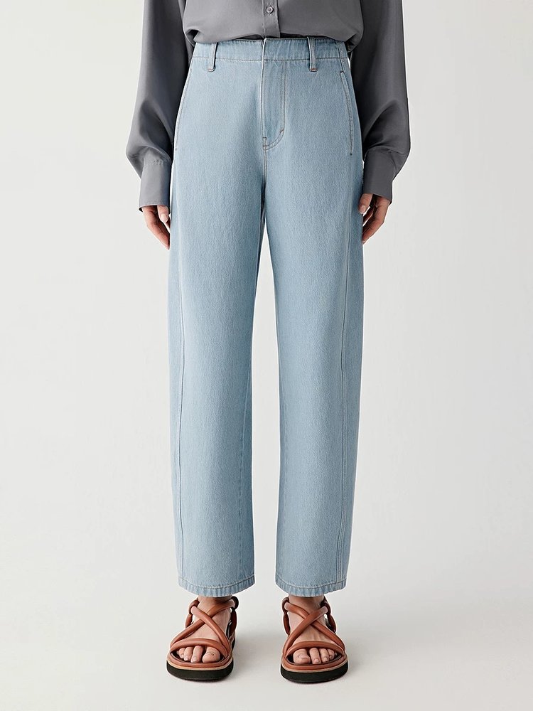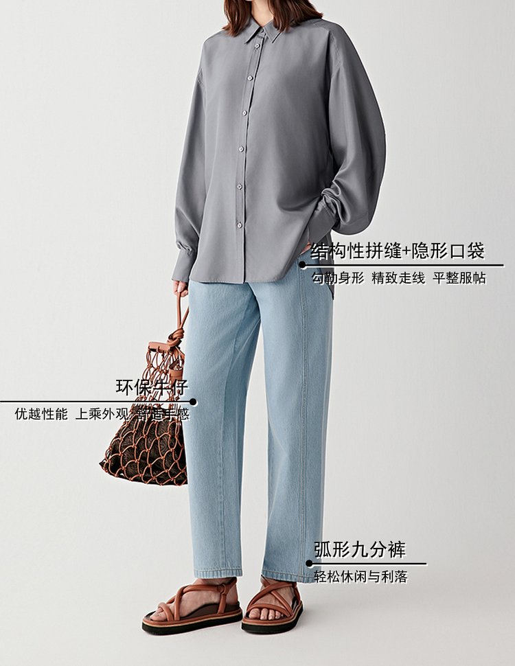 略带弧形的轮廓使裤腿宽松