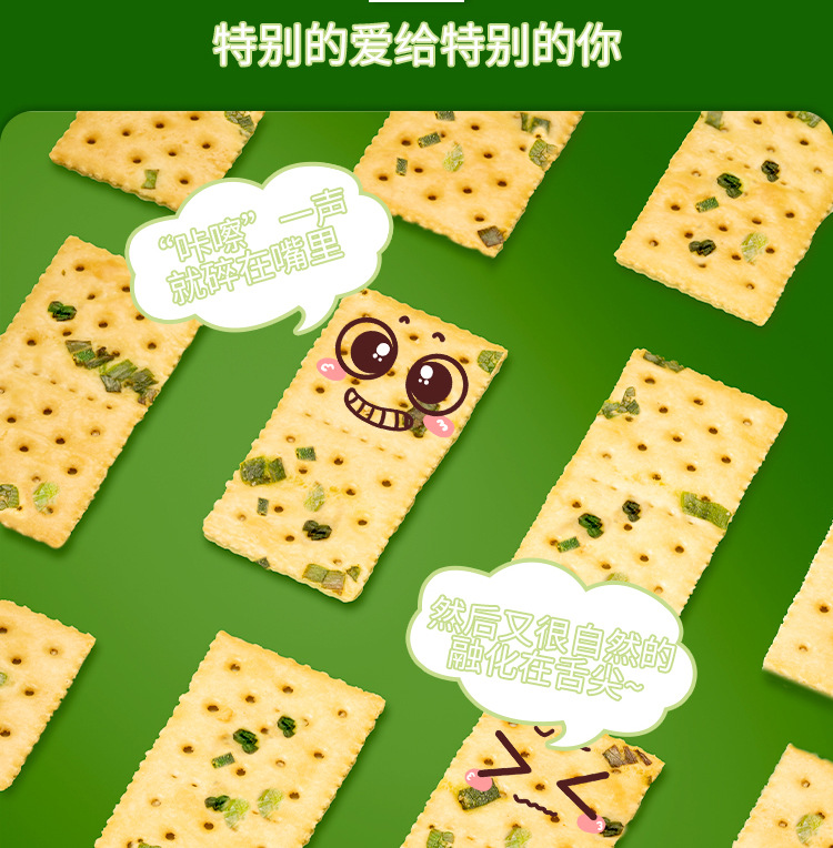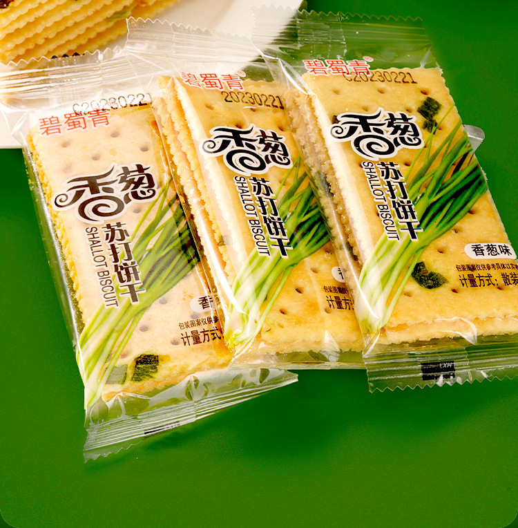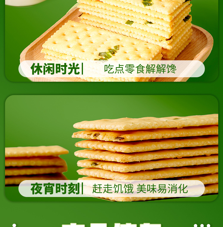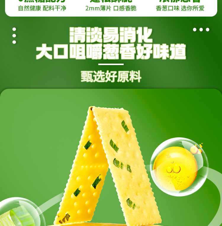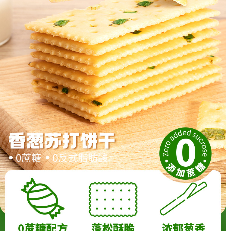 【0蔗糖❗香葱苏打饼干】2mm薄片口感香脆,口感咸香好吃不腻,大口咀嚼葱香好味道,散装咸味梳打饼干代餐饱腹整箱QQ