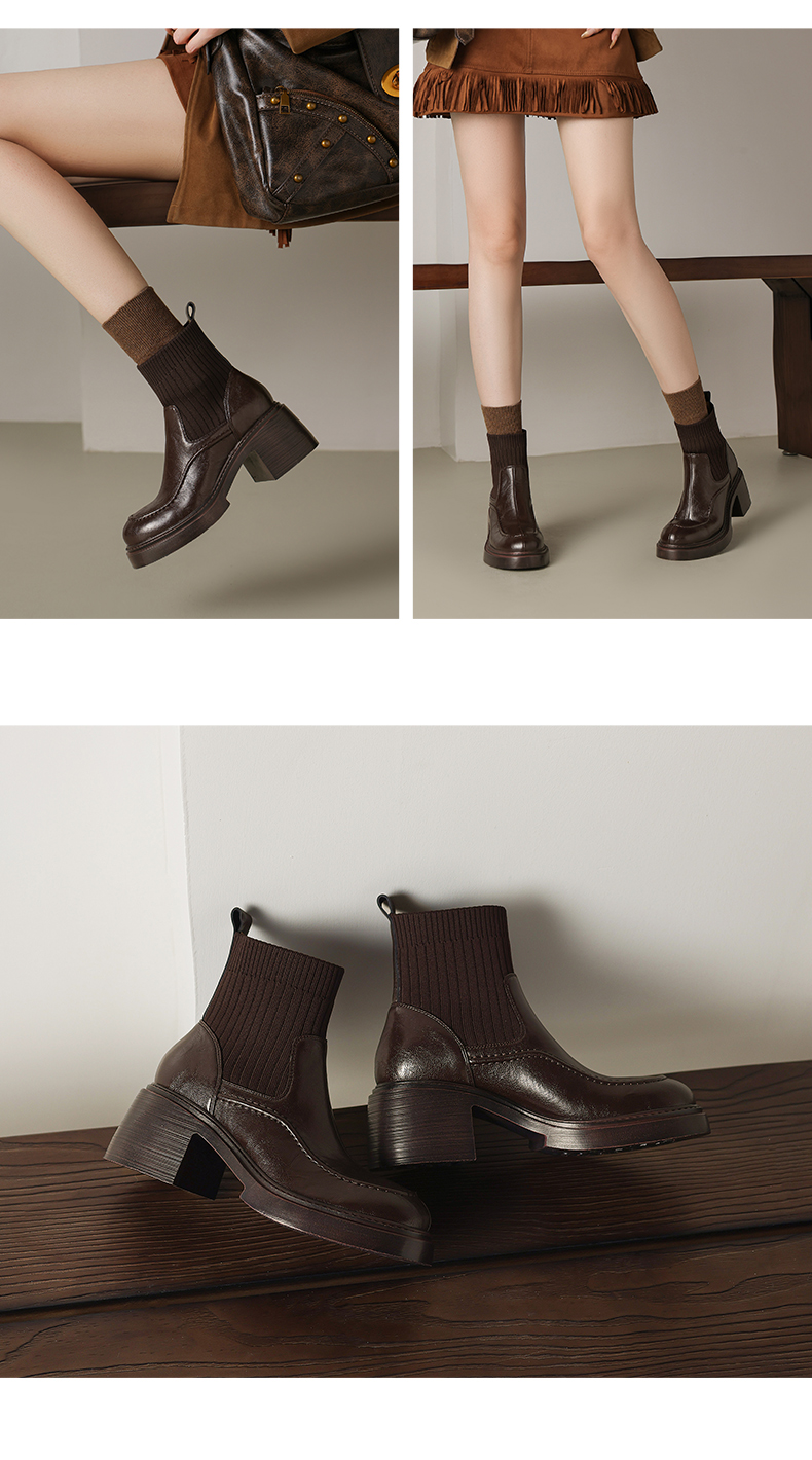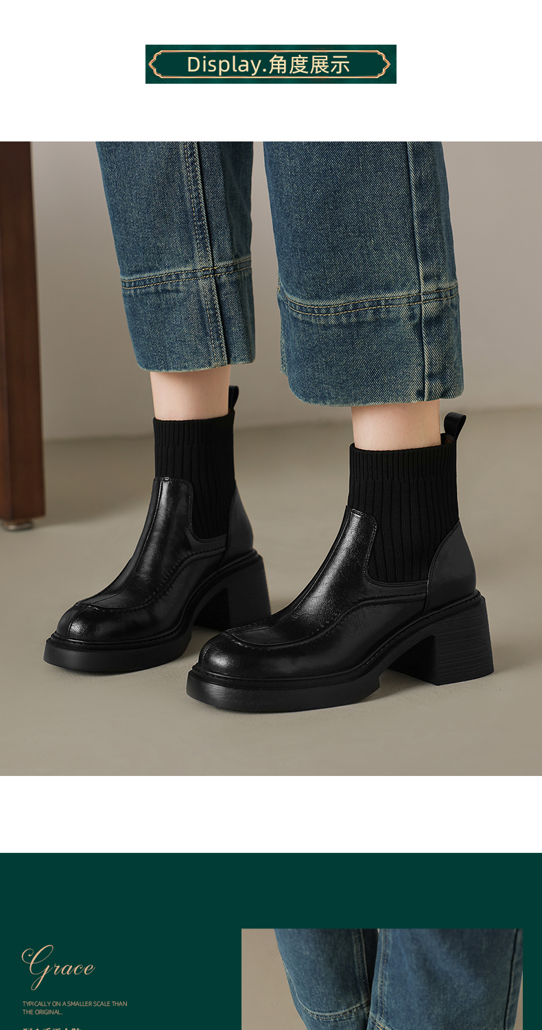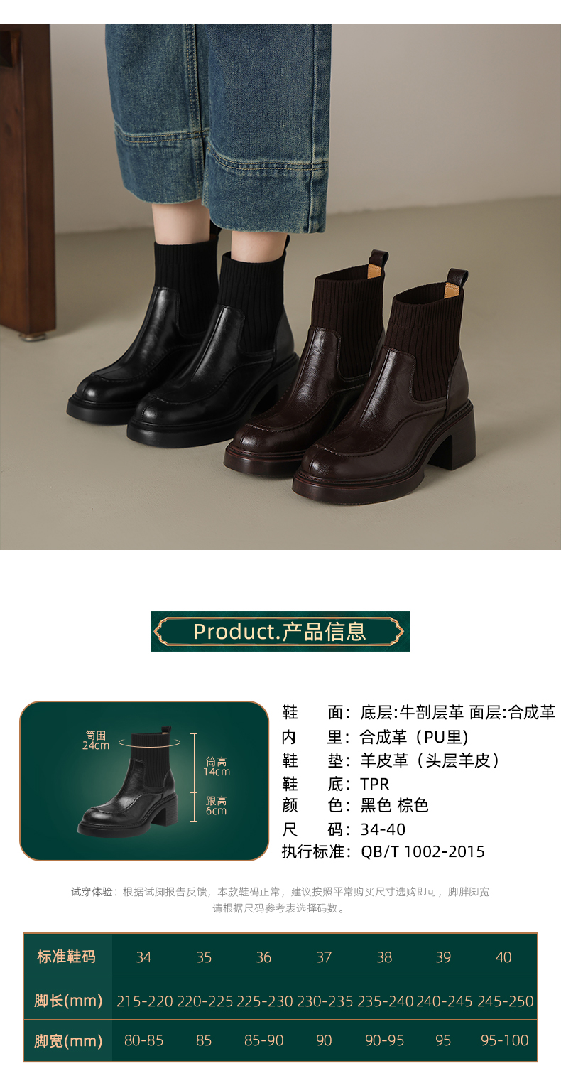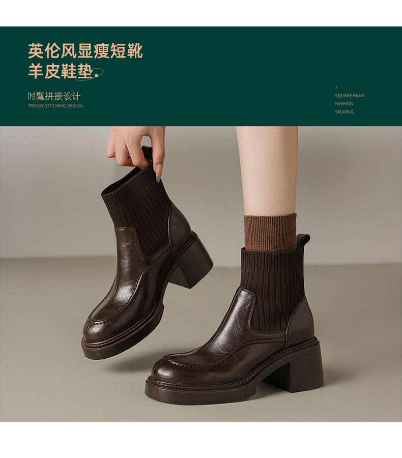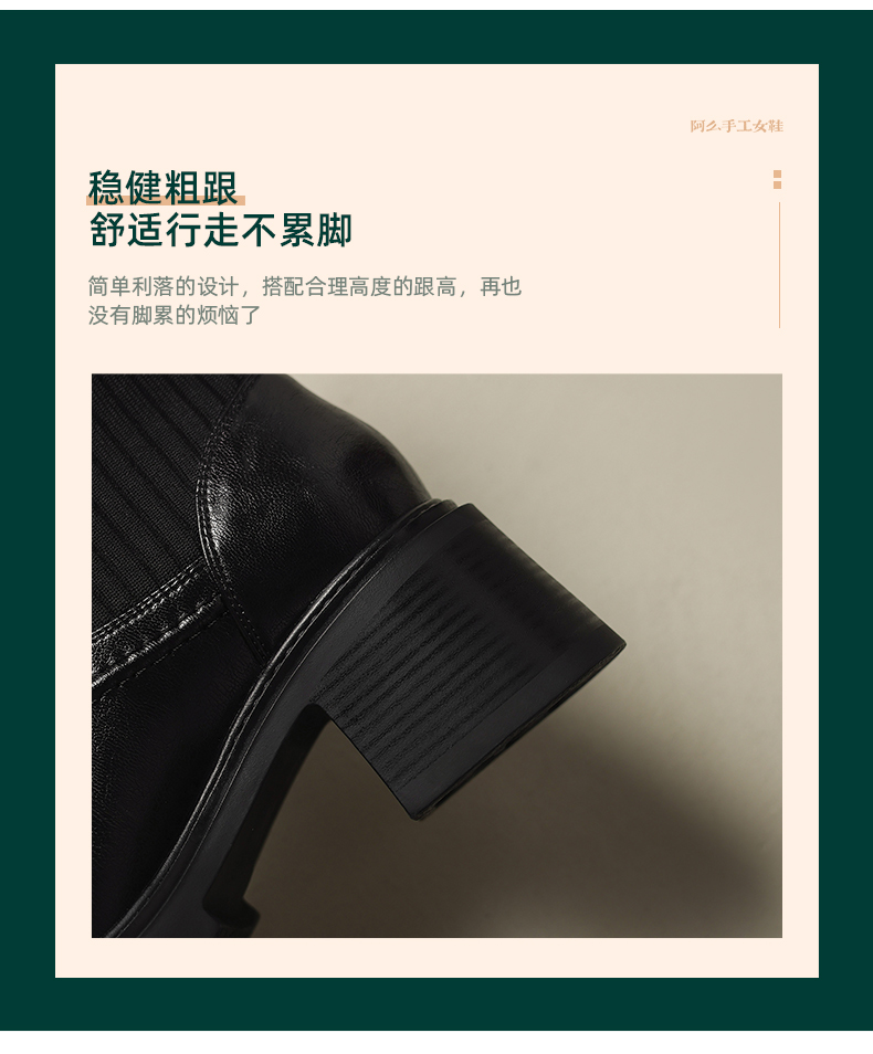阿么手工女鞋高跟针织弹力袜靴6CM秋冬复古英伦风厚底瘦瘦靴百搭