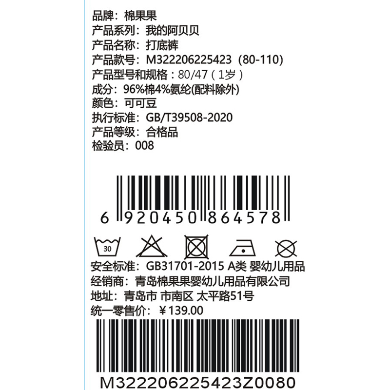 | 裤长 | 43.5 | 49 | 54.5 | 60.5 |