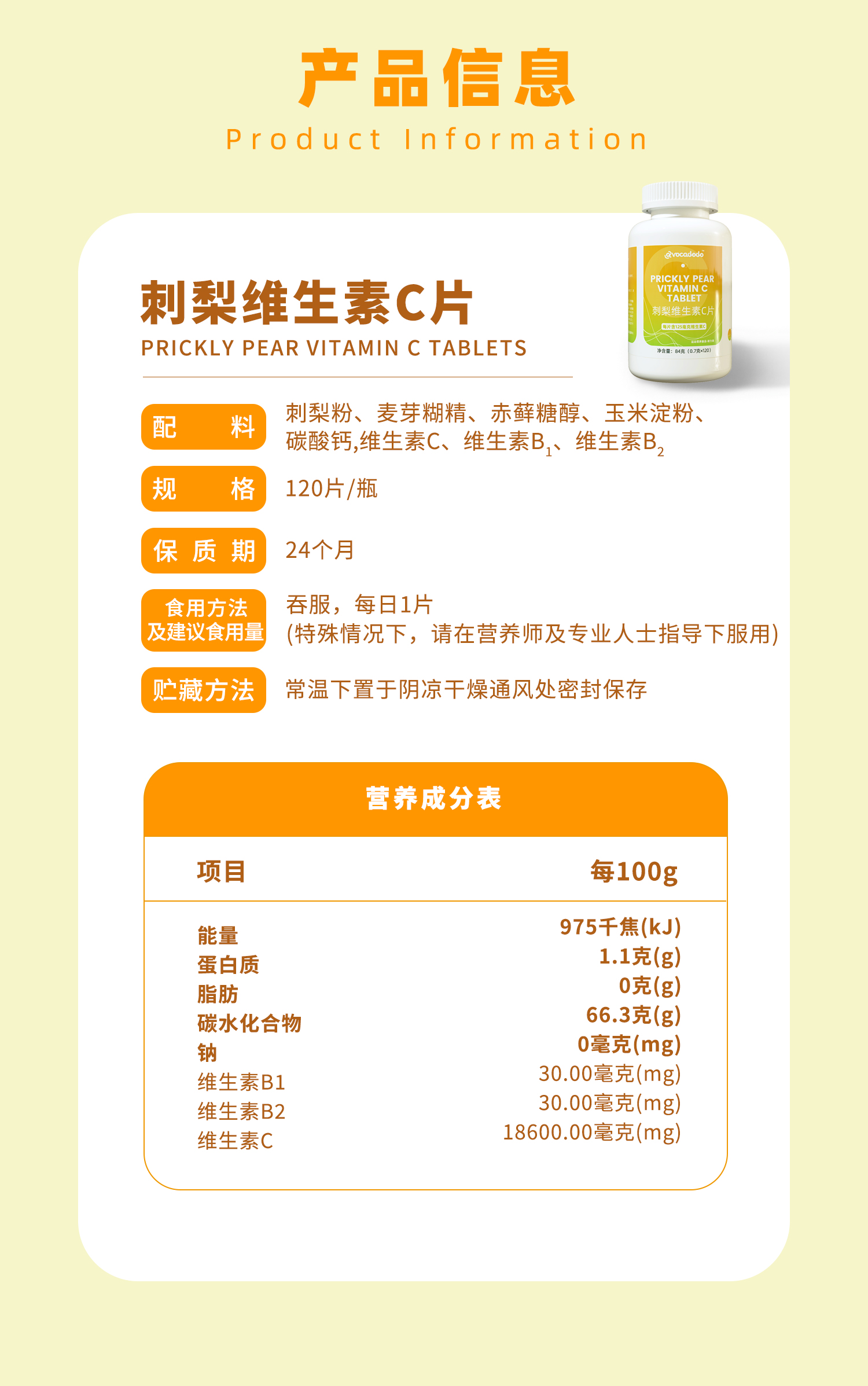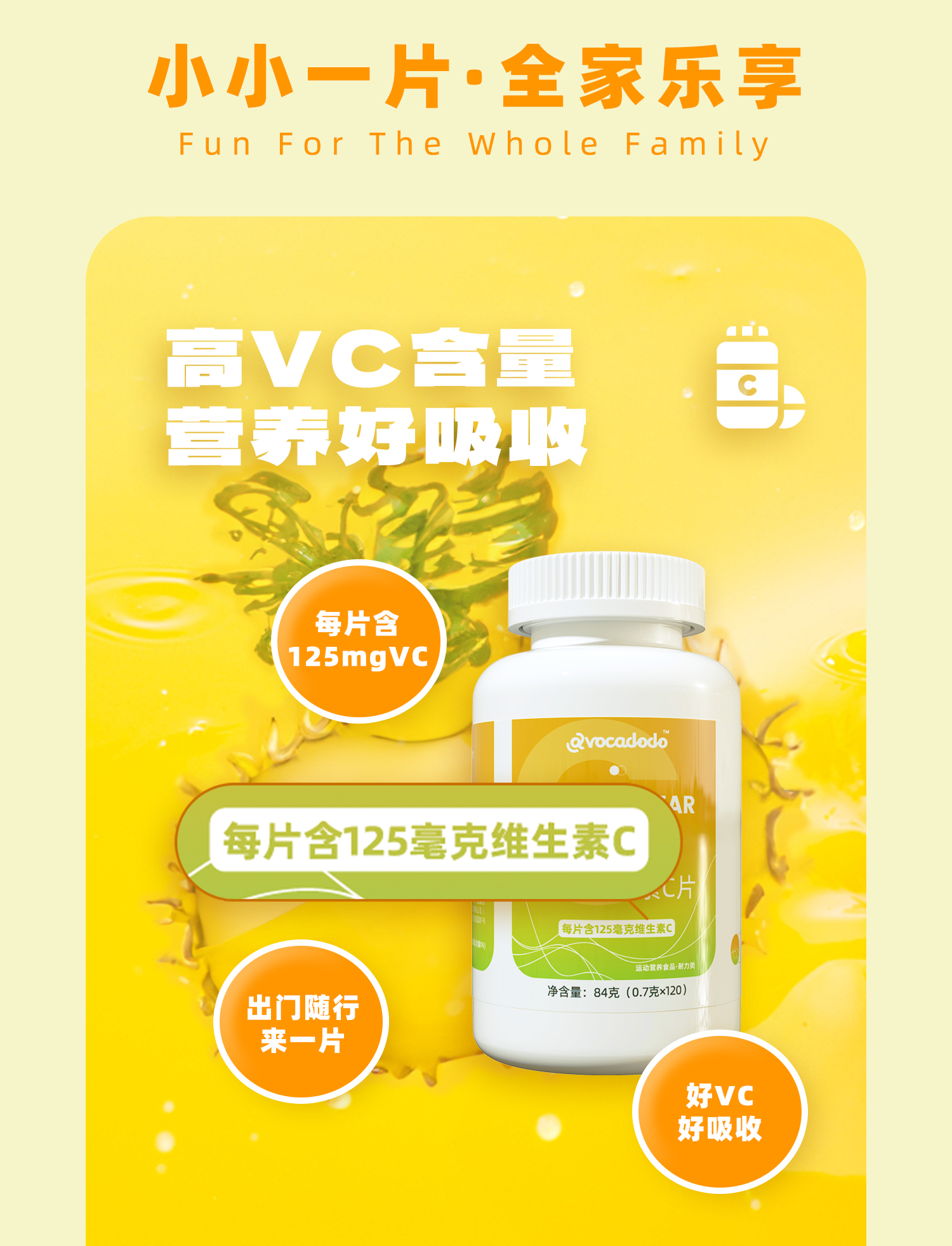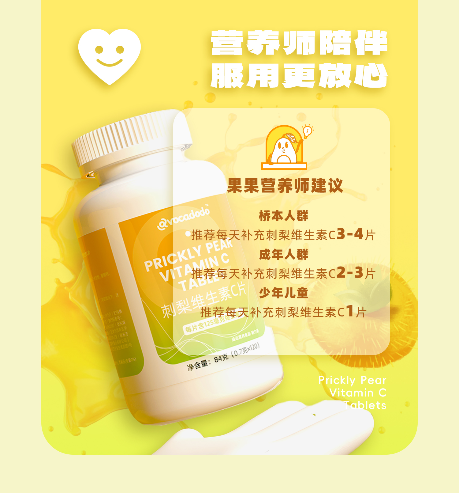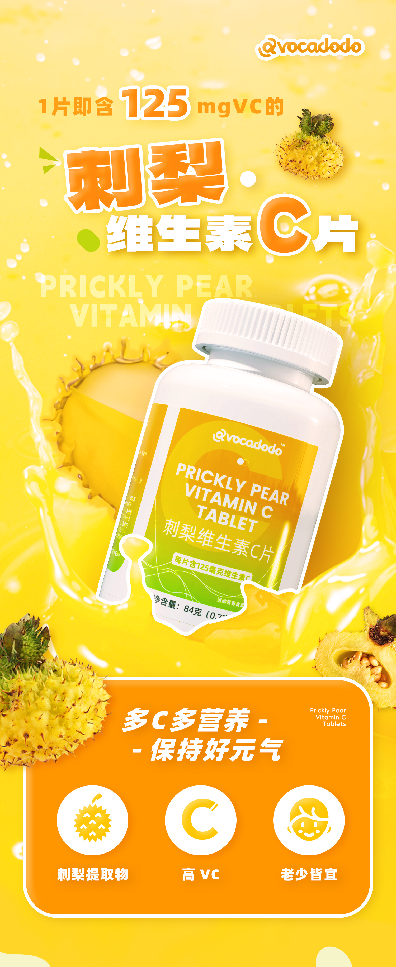 Avocadodo维生素C刺梨味vc120粒125mg非泡腾免疫植物牛油果果桥本