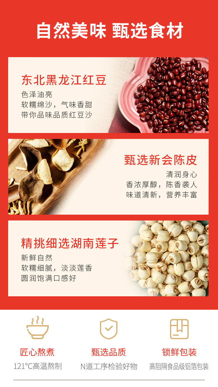 【第二件立减10元!陈皮莲子红豆沙】用心挑选好食材,粗细搭配,膳食平衡营养丰富,全家都可享用,营养价值高,富含植物蛋白,软糯绵沙,早餐代餐气味香甜,下午茶甜品L
