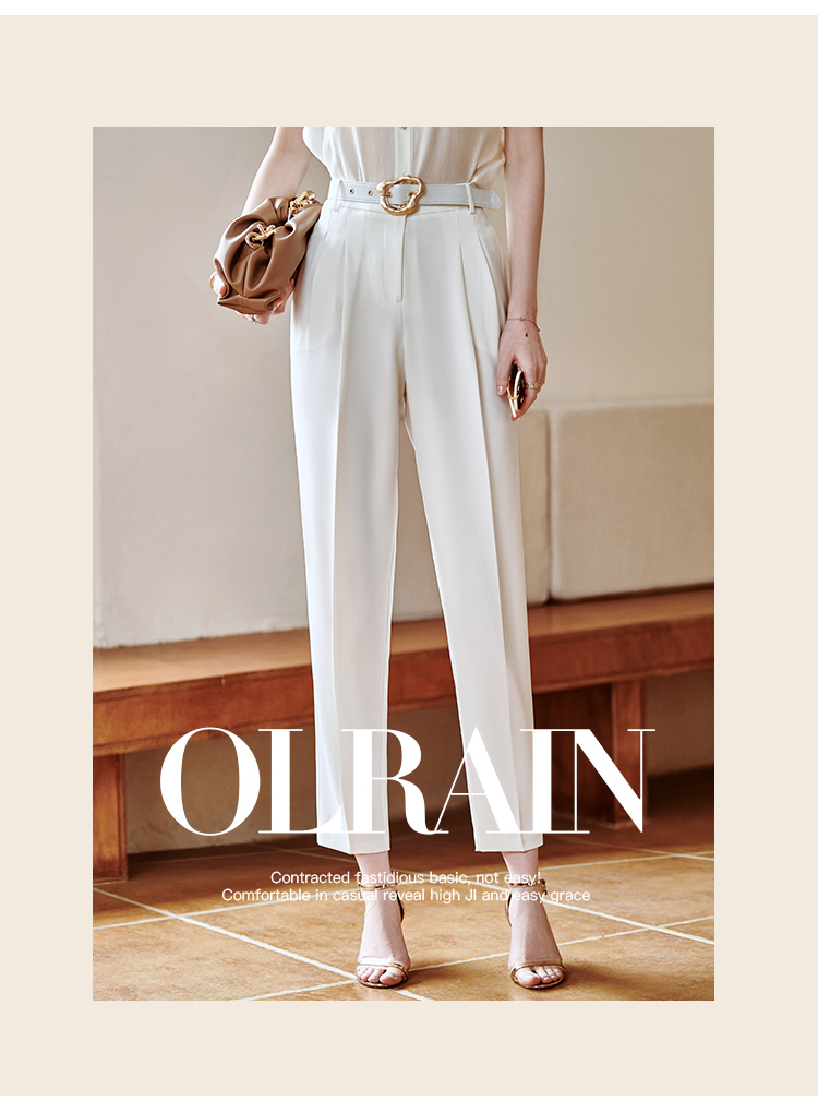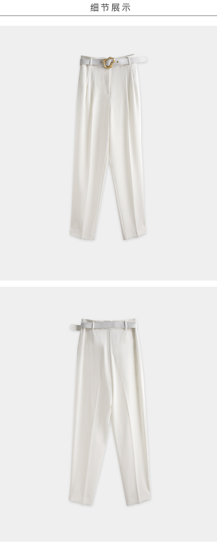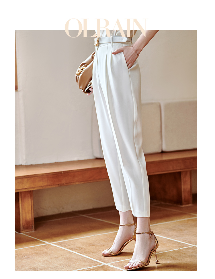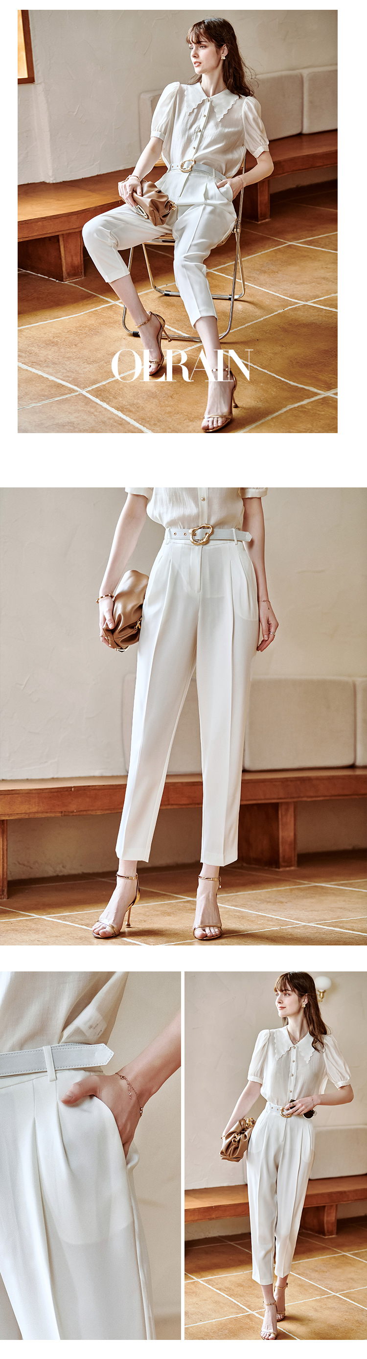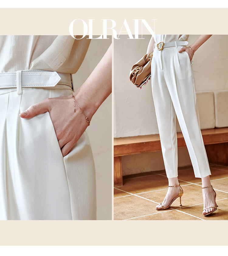 欧芮儿白色休闲裤女2021新款夏时尚气质简洁装饰扣斜纹百搭锥形裤