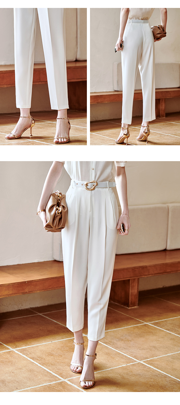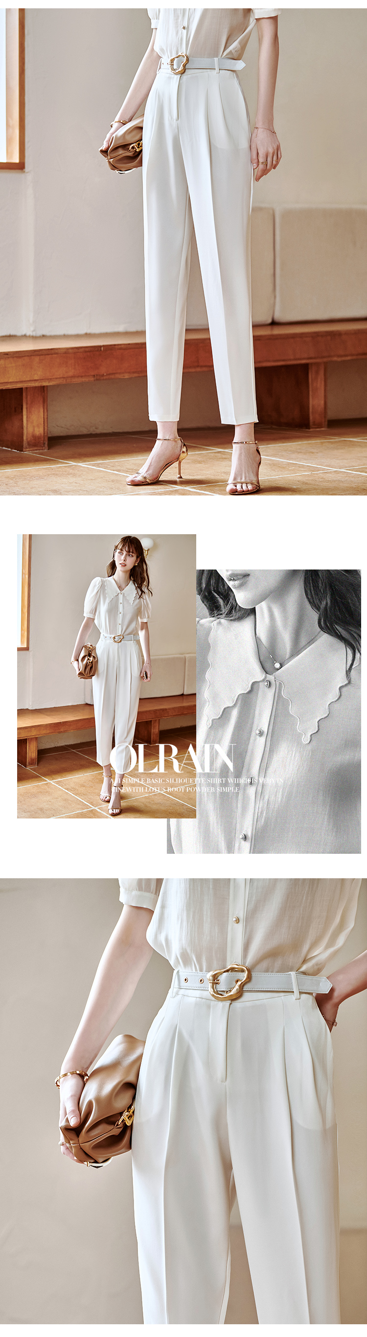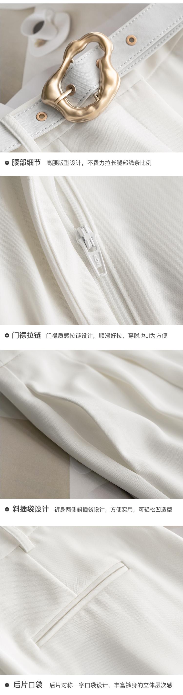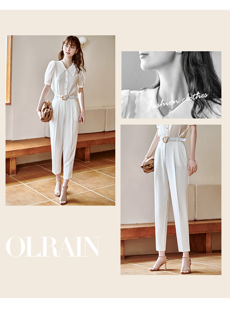 欧芮儿白色休闲裤女2021新款夏时尚气质简洁装饰扣斜纹百搭锥形裤