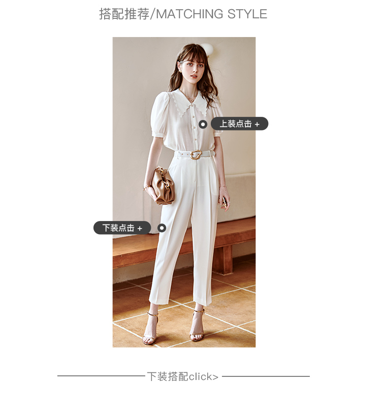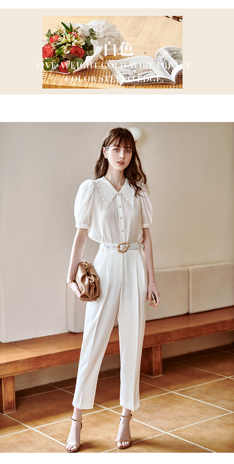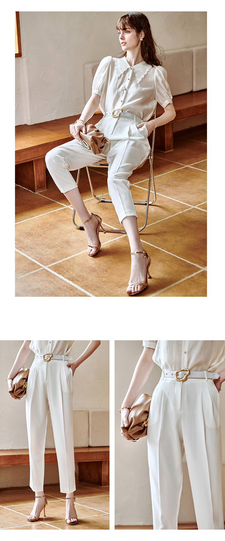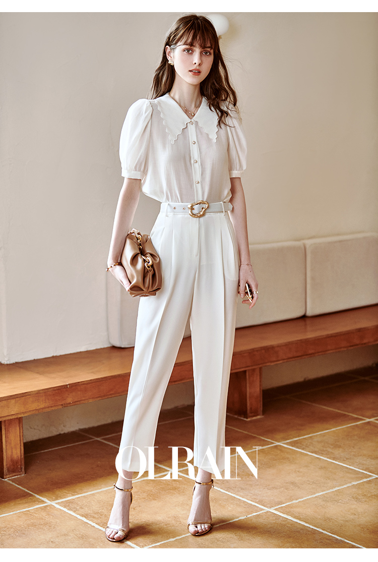 欧芮儿白色休闲裤女2021新款夏时尚气质简洁装饰扣斜纹百搭锥形裤