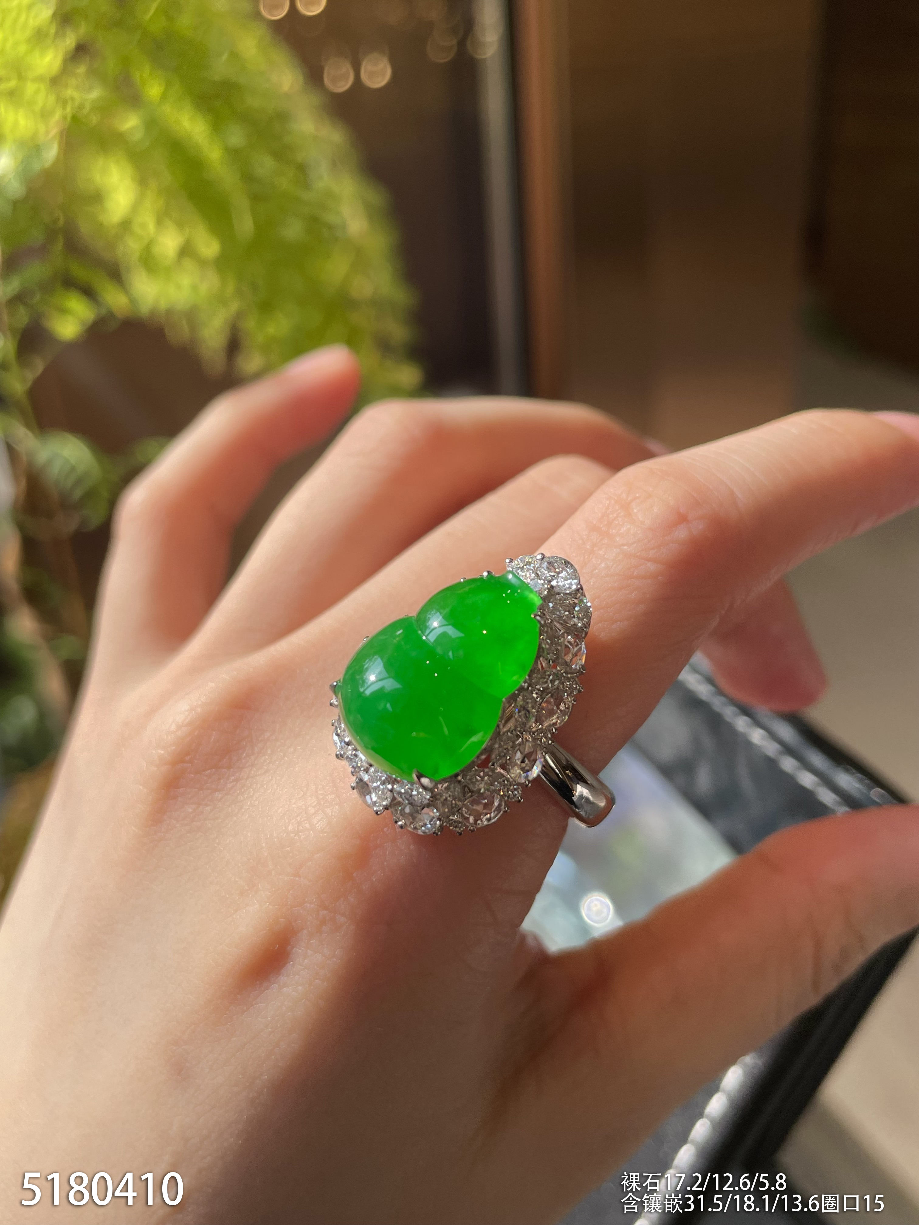 高冰种艳绿葫芦戒指吊坠两用款【5180410】具体价格微信咨询