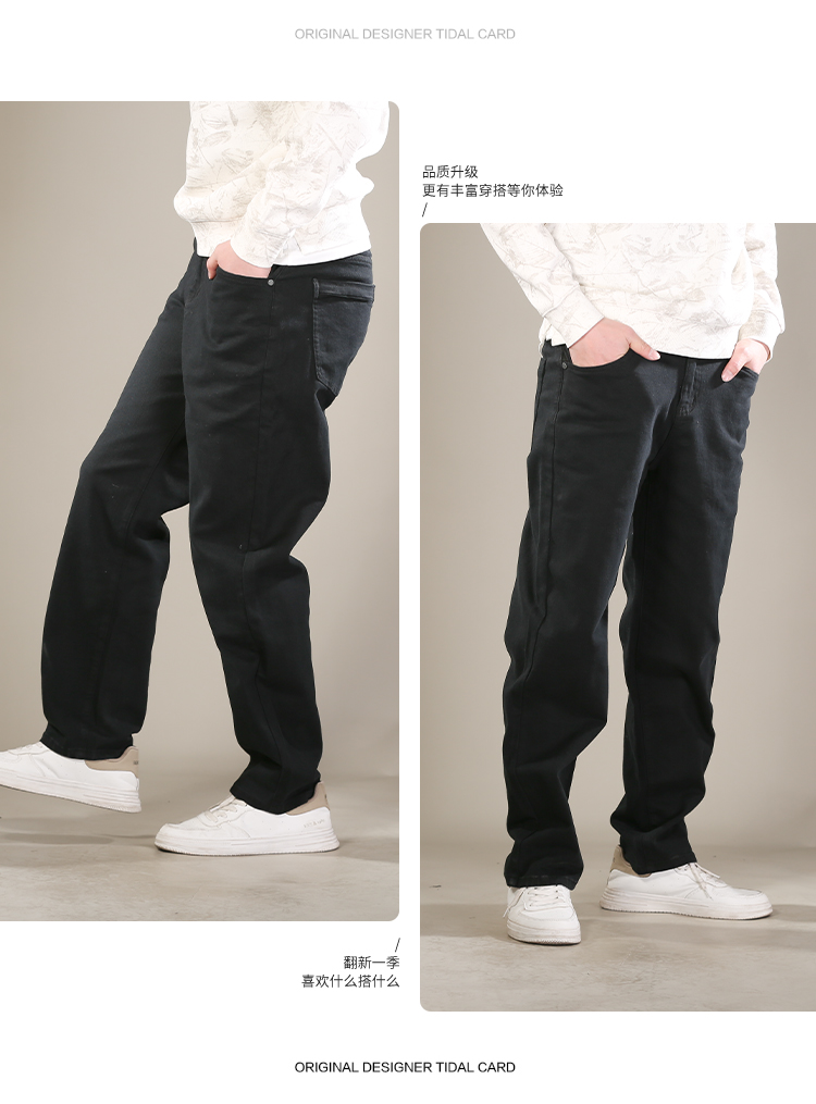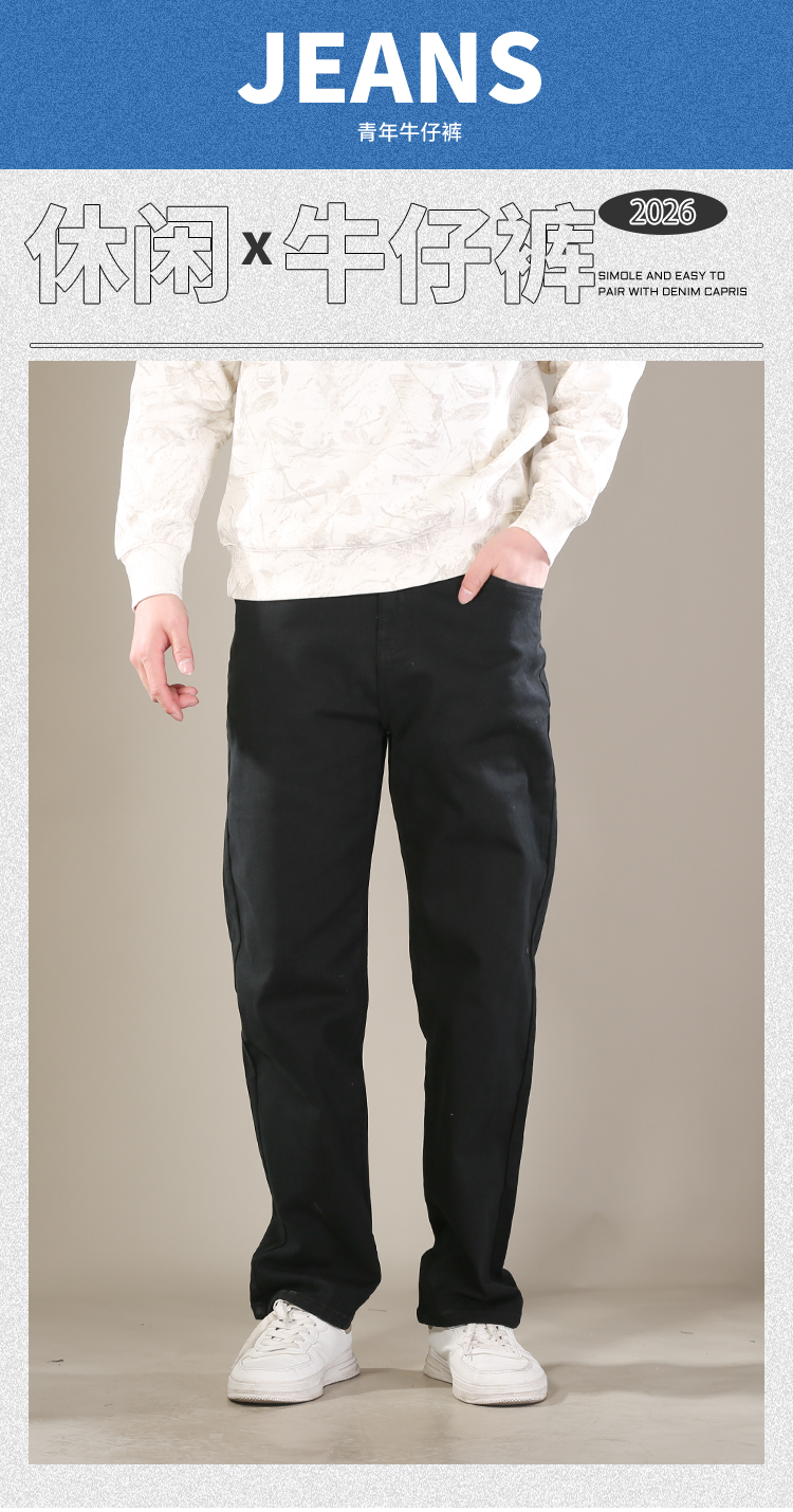 DRONKOO 2026 正常腰表袋皮标微弹中厚牛仔长裤