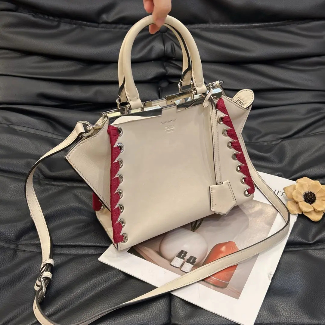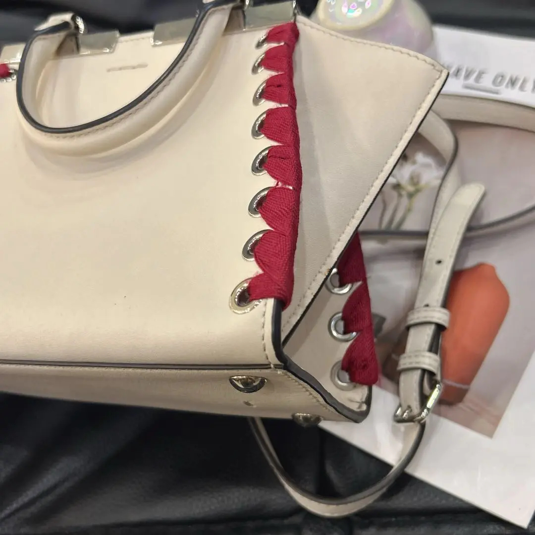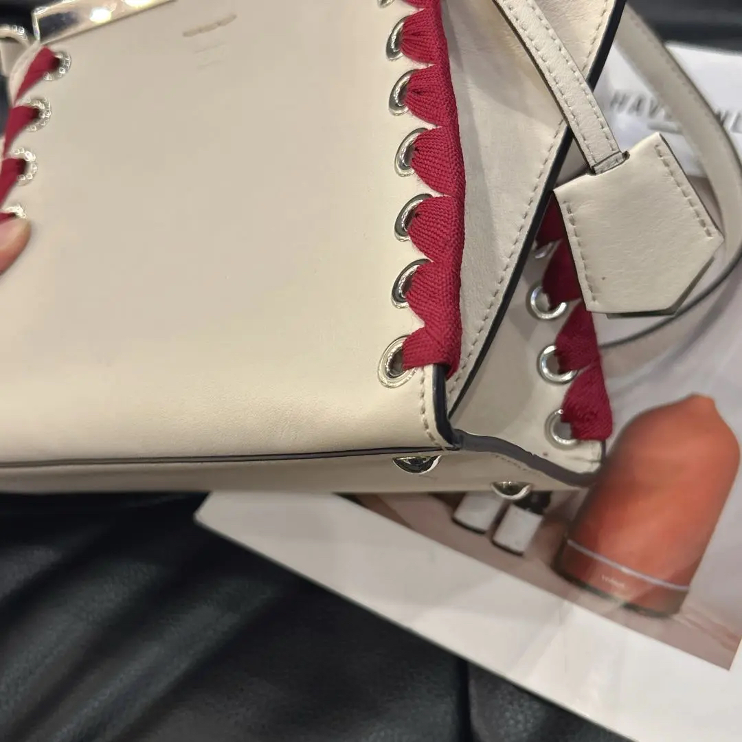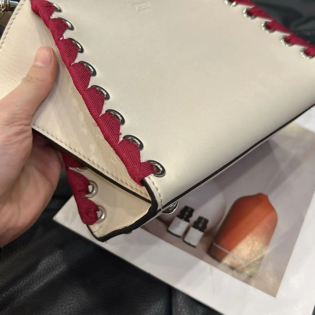 【商品详情】正品二手 fendi 3Jours 织带缝边 白拼红 牛皮 斜挎包😇97新 21×16 配件:肩带 吊牌。喵喵喵