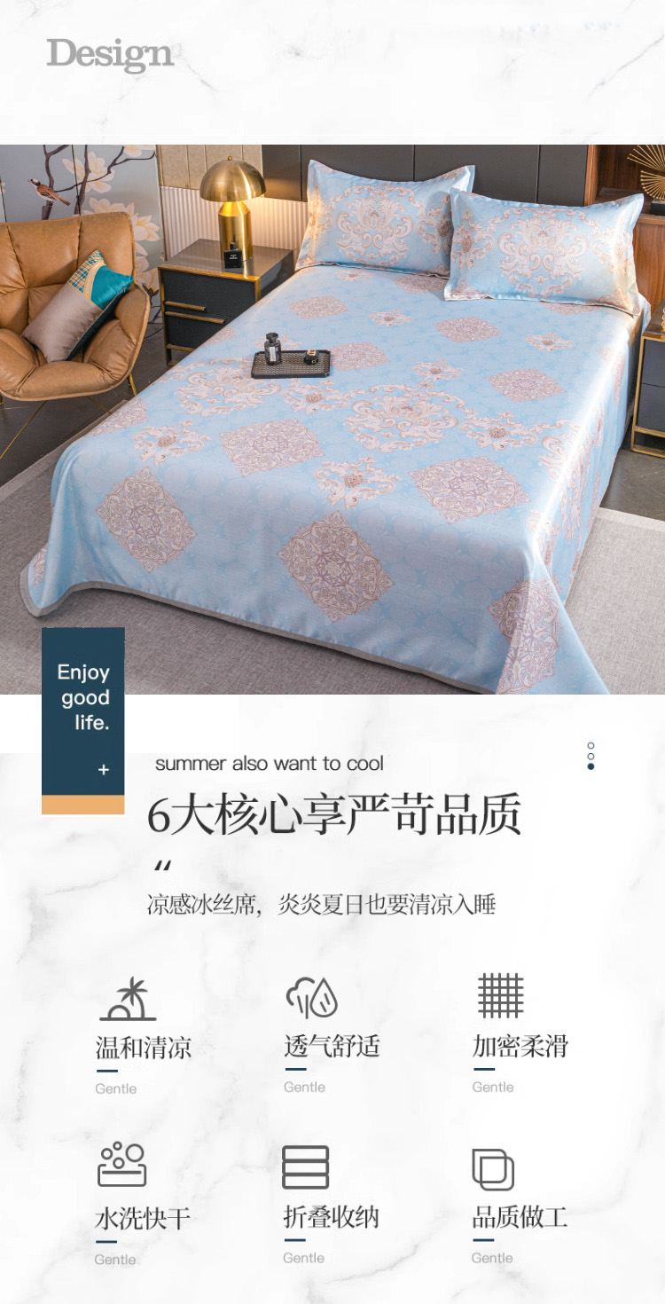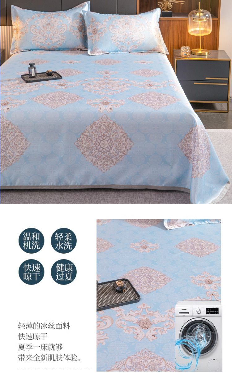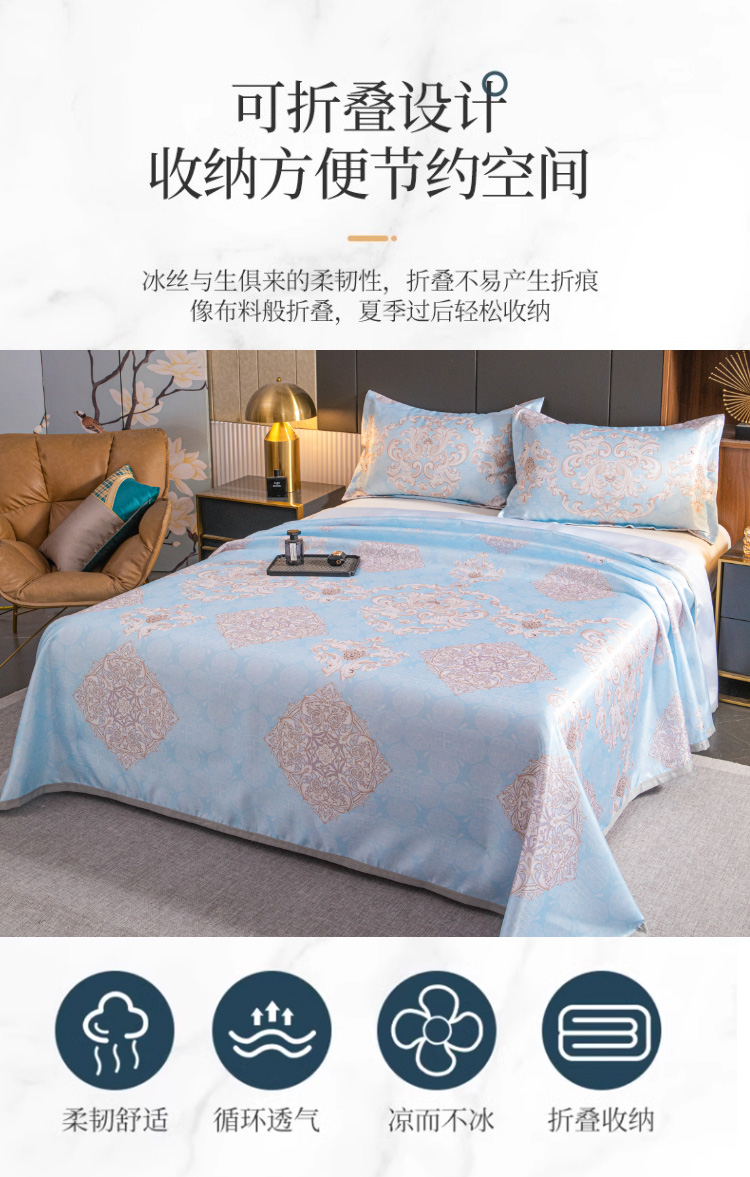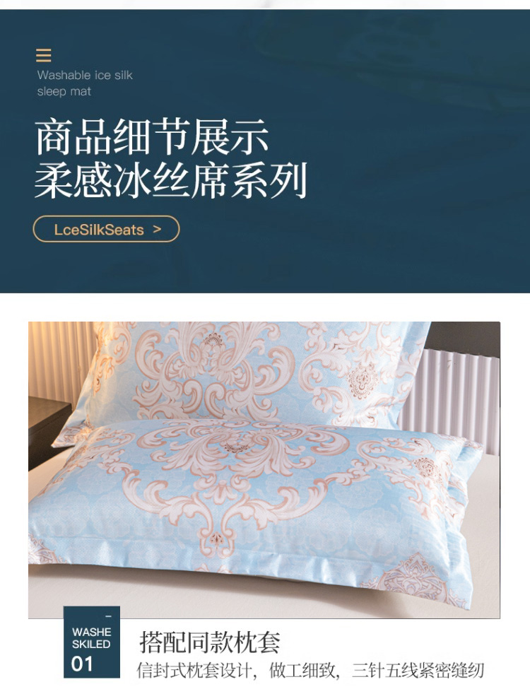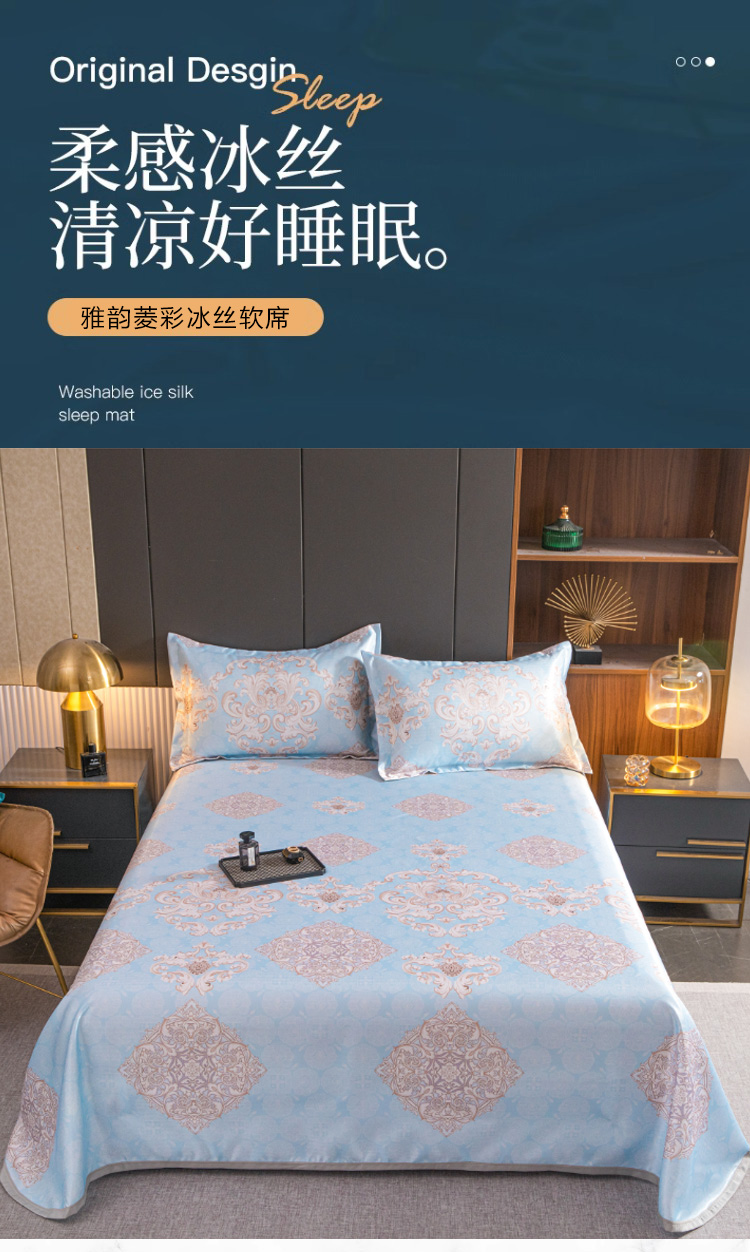 悠梦嘉居雅韵蓝菱冰丝软席三件套