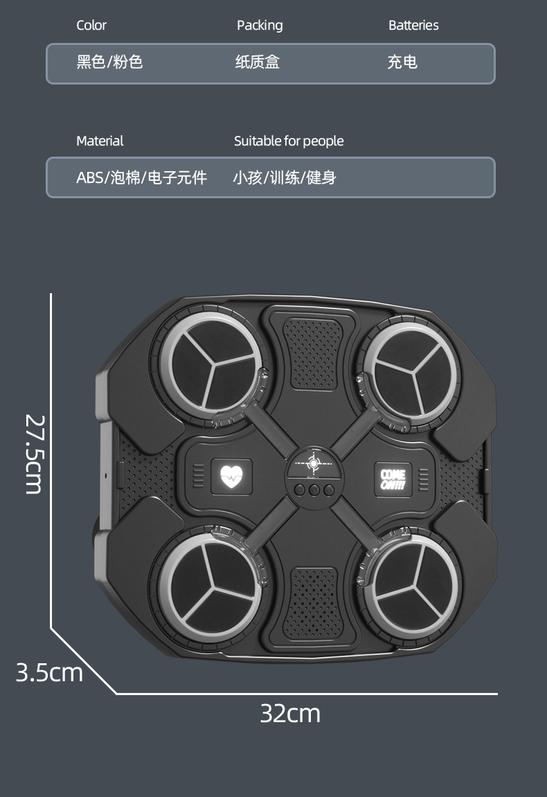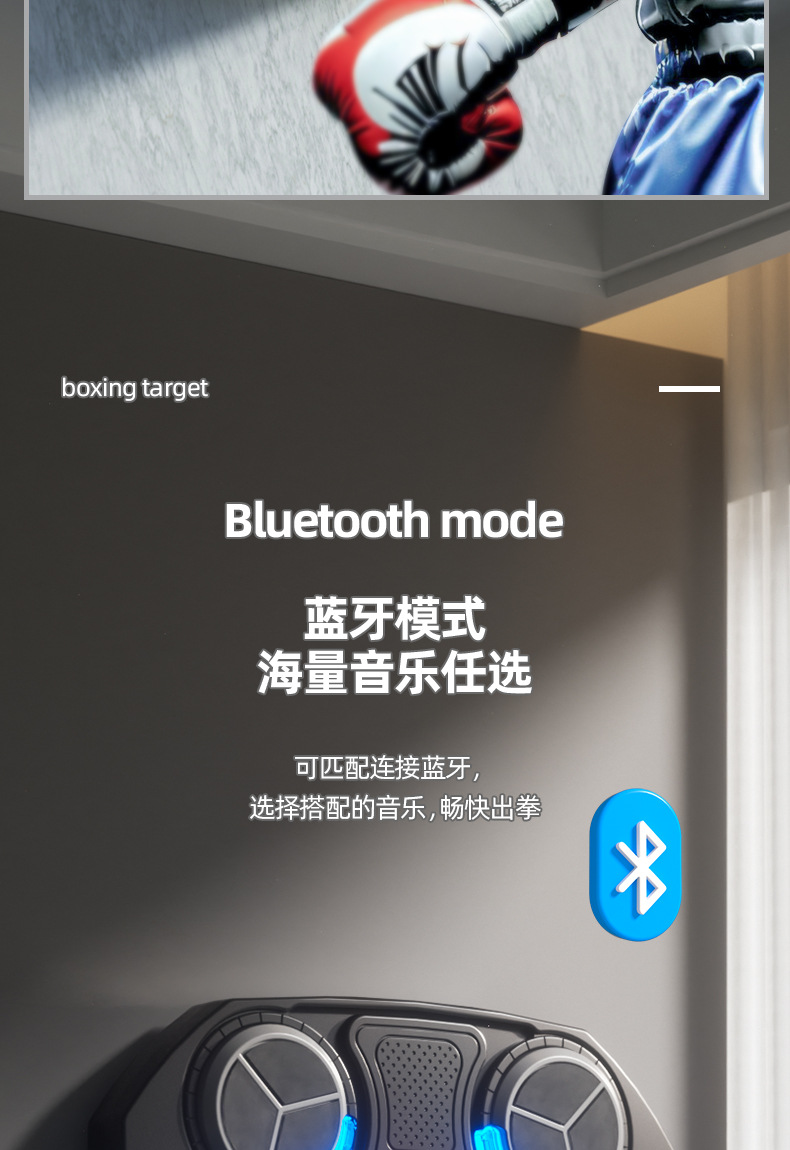 【免打孔智能拳击靶 海量音乐任选】动感击打 畅快出拳 儿童音乐拳击靶 家用电子反应靶打节奏训练器