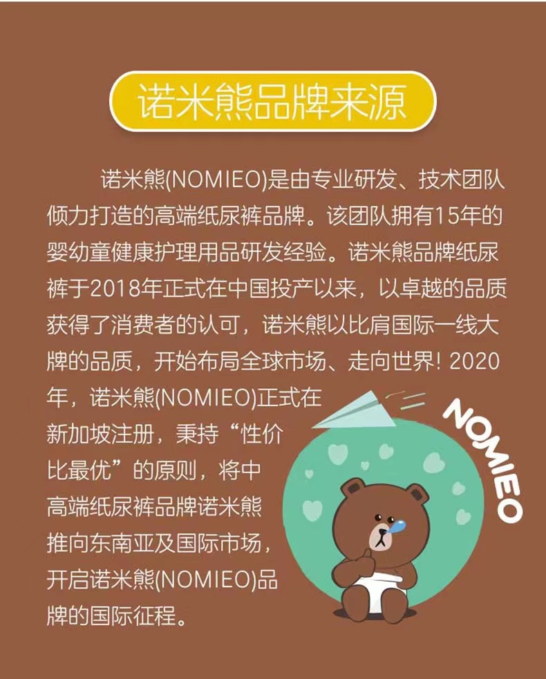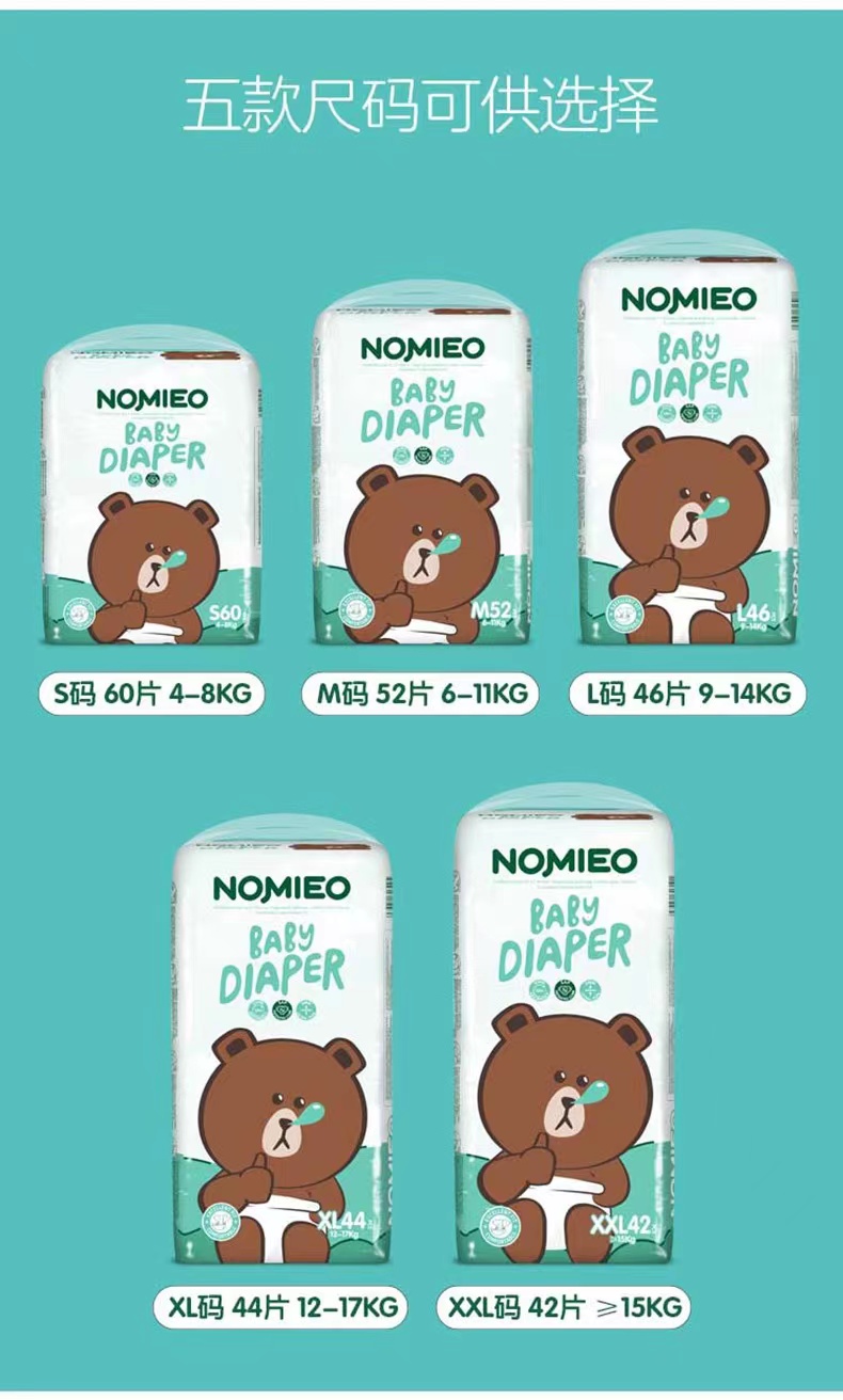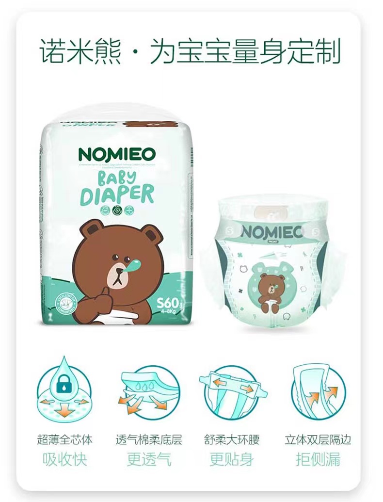 诺米熊全芯体婴儿纸尿裤薄尿不湿棉柔双热风环腰裤