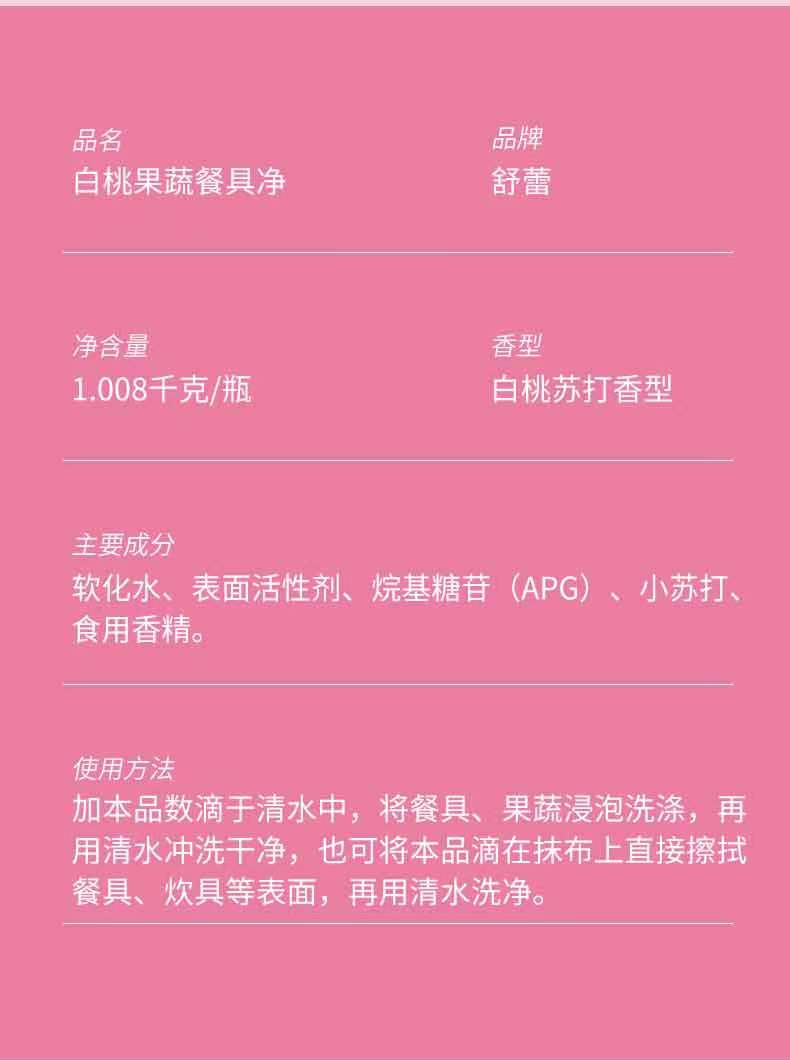 舒蕾波卡莉香白桃果蔬餐具净1.008kg*2瓶
