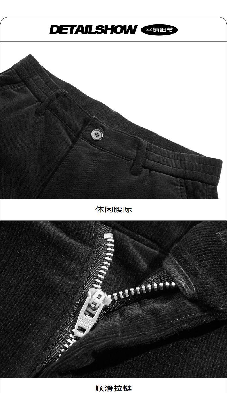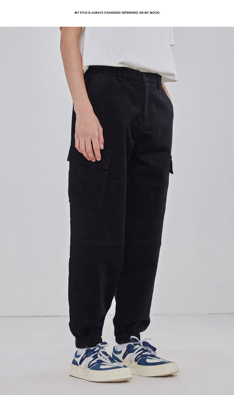 gxgjeans男装秋季休闲长裤男黑色灯芯绒裤子束脚裤 宽松舒适休闲裤