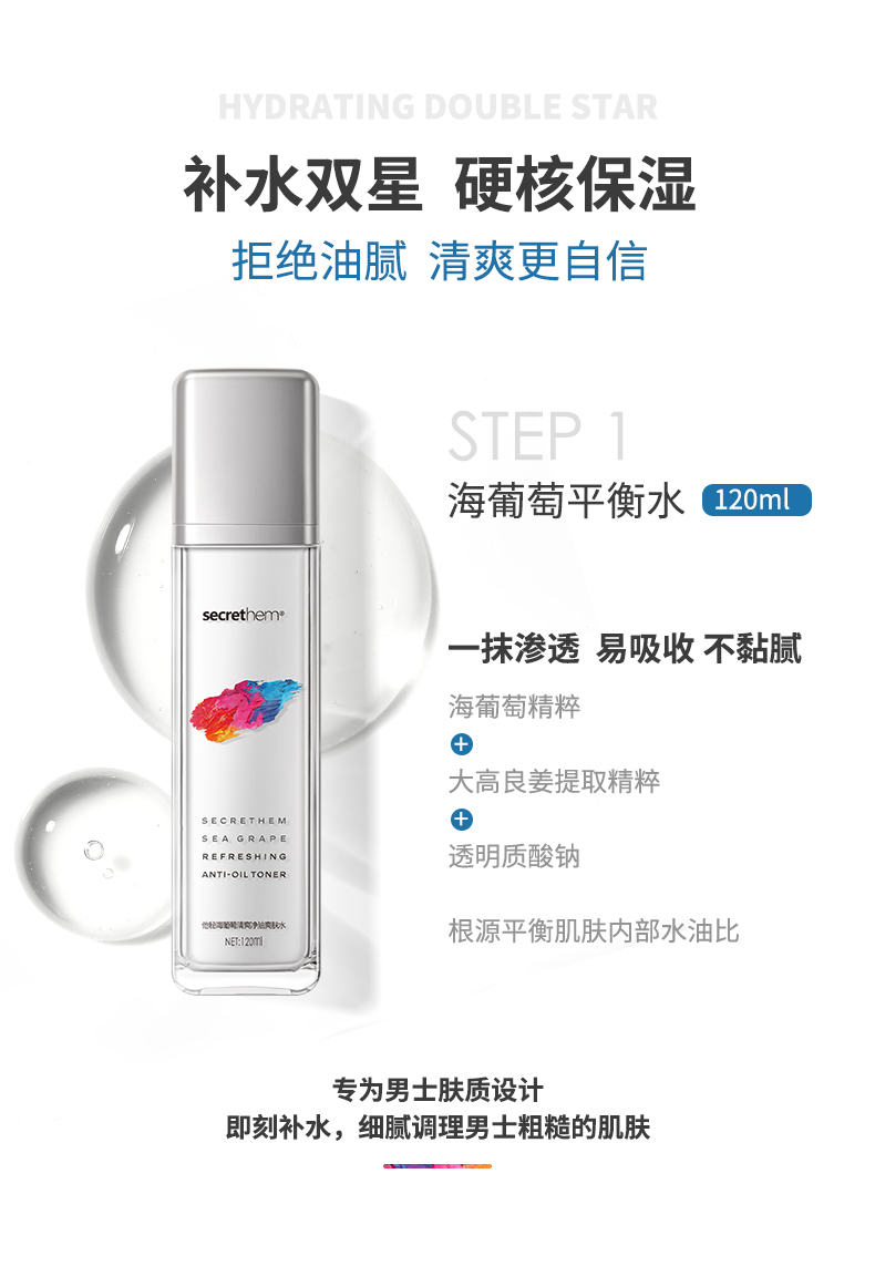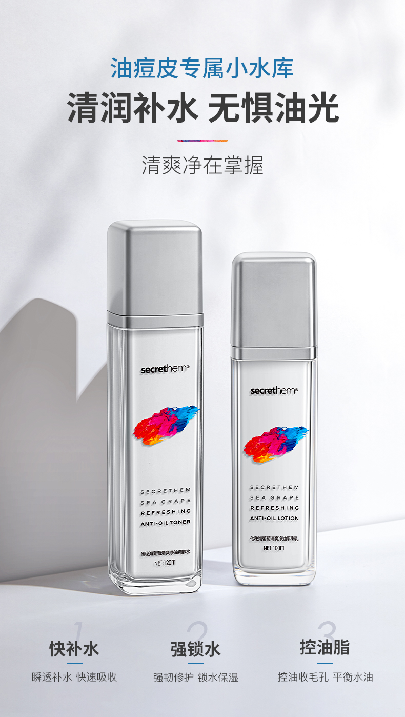 他秘海葡萄水乳套装控油补水保湿水润滋养护肤品男女护肤套装