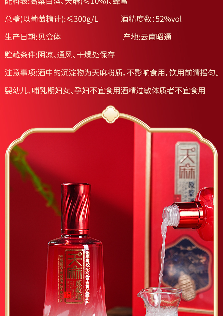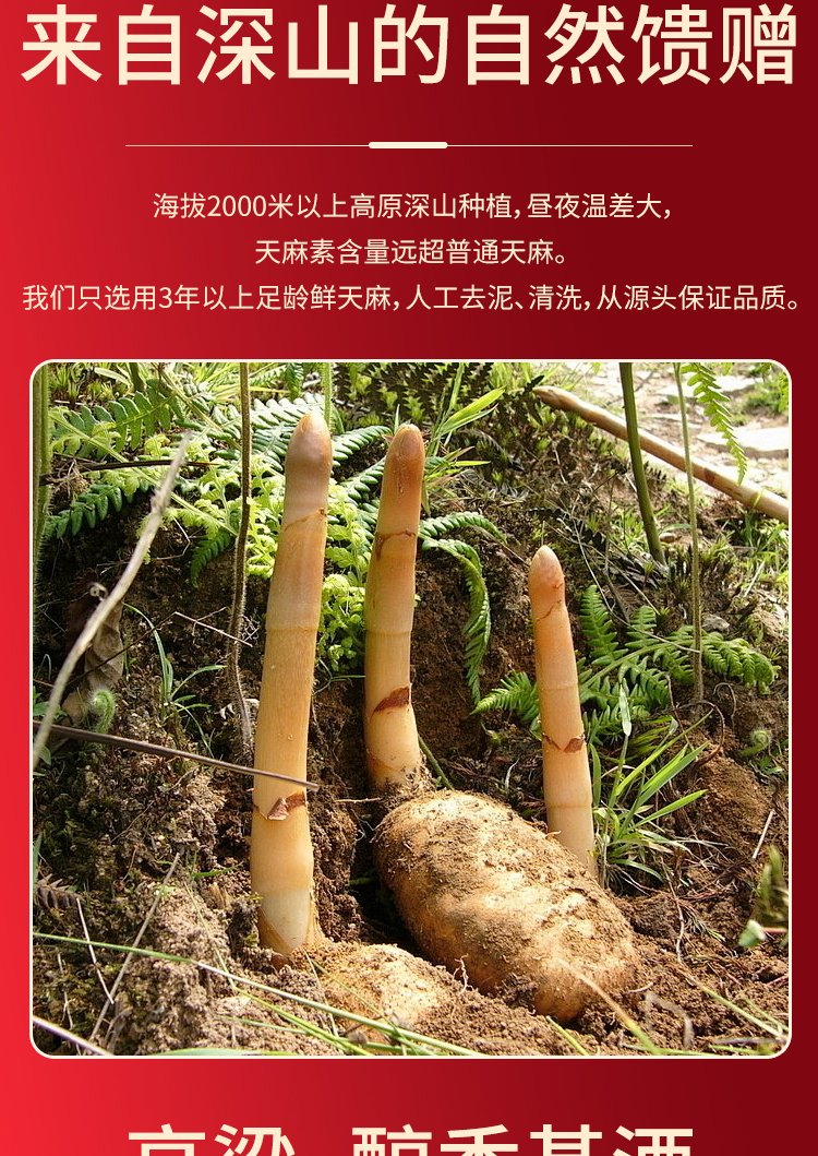 天麻原浆酒红瓶云南昭通新鲜天麻