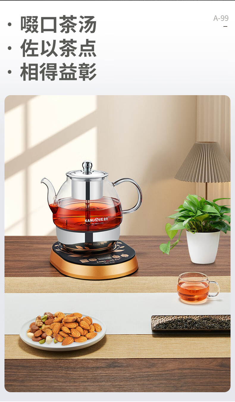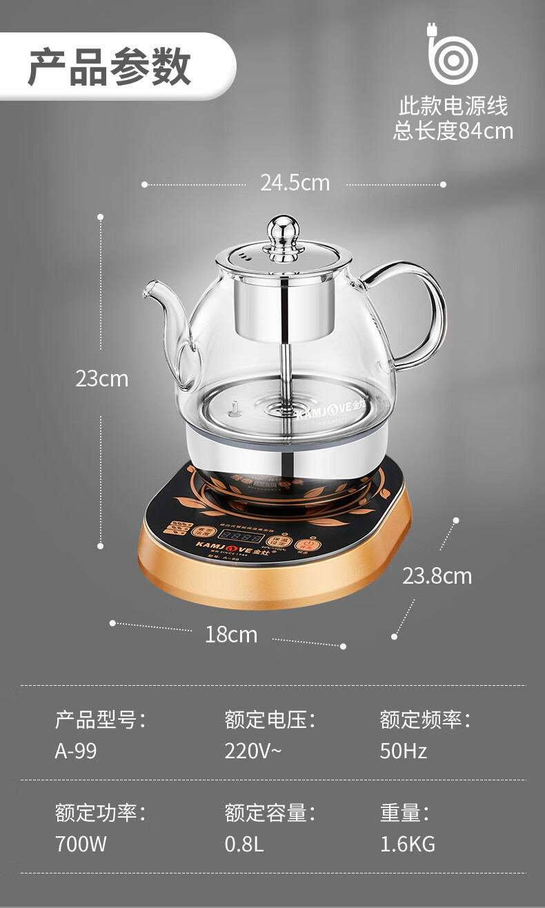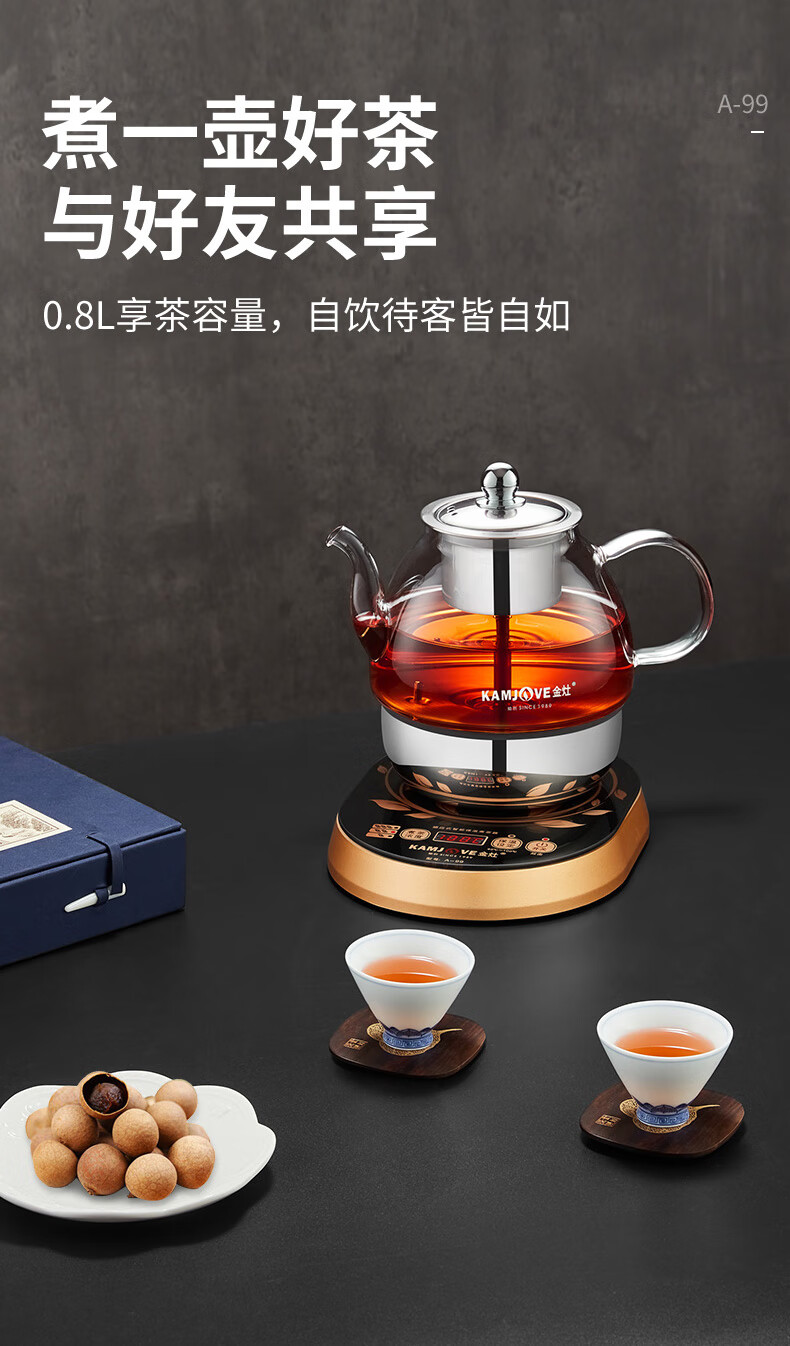 金灶A-99蒸汽喷淋煮茶器全自动玻璃茶壶电热水壶小型家用煮茶壶