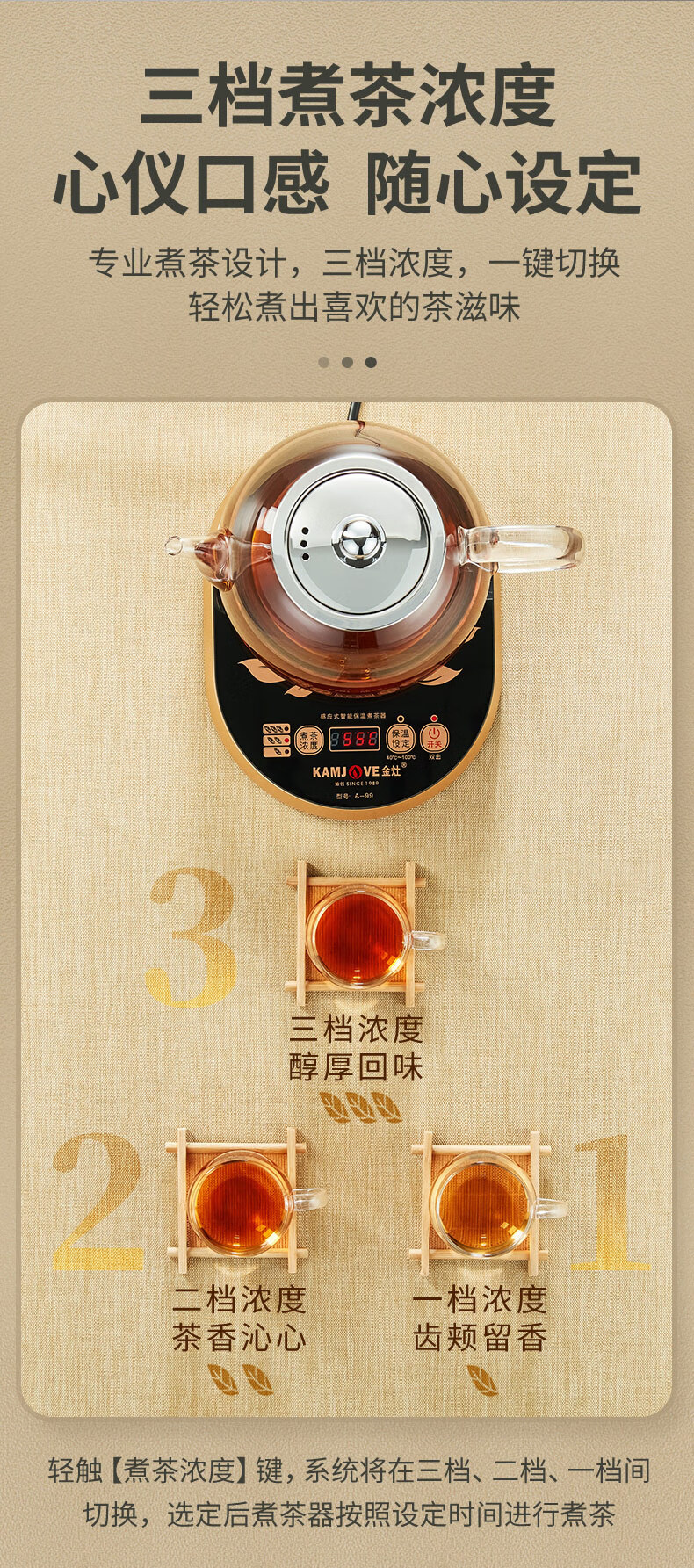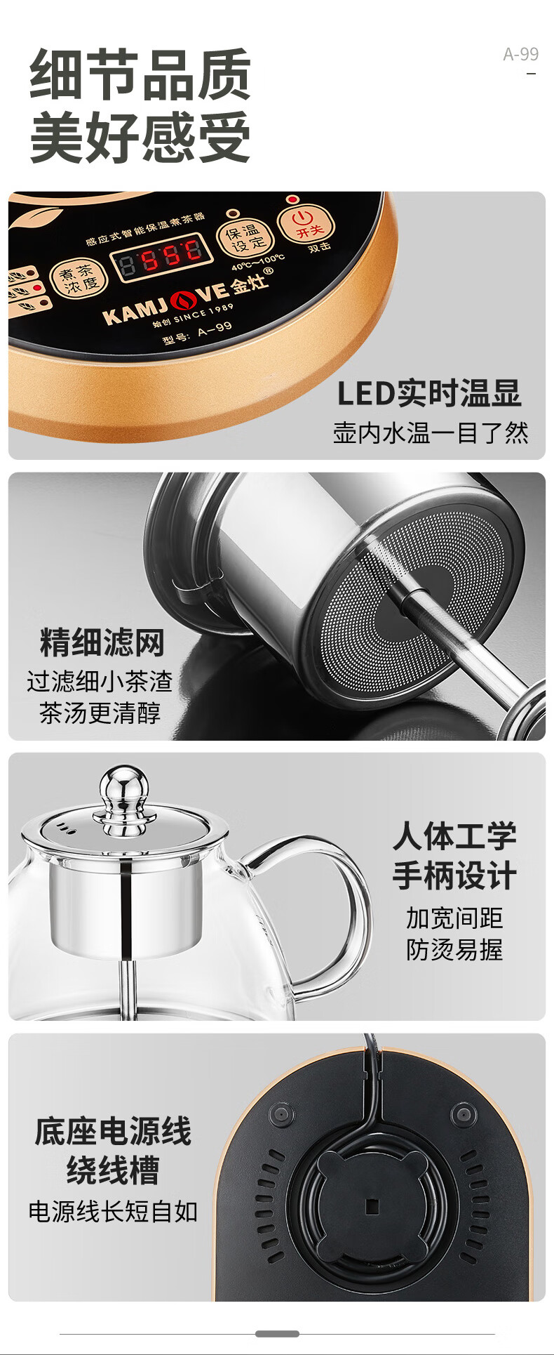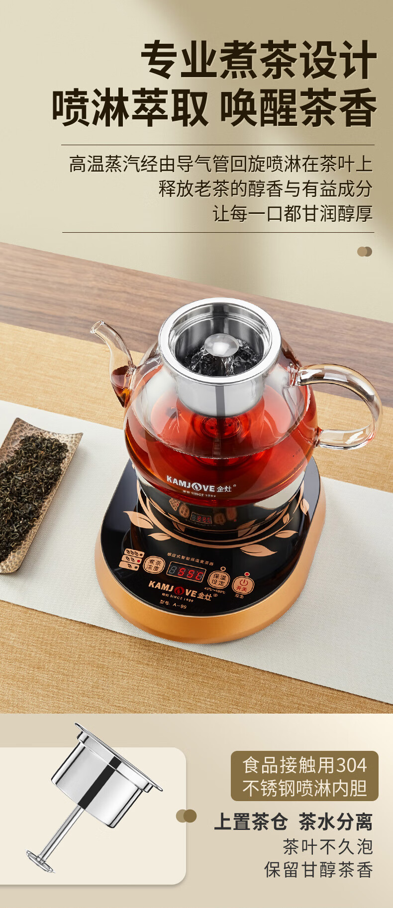 金灶A-99蒸汽喷淋煮茶器全自动玻璃茶壶电热水壶小型家用煮茶壶