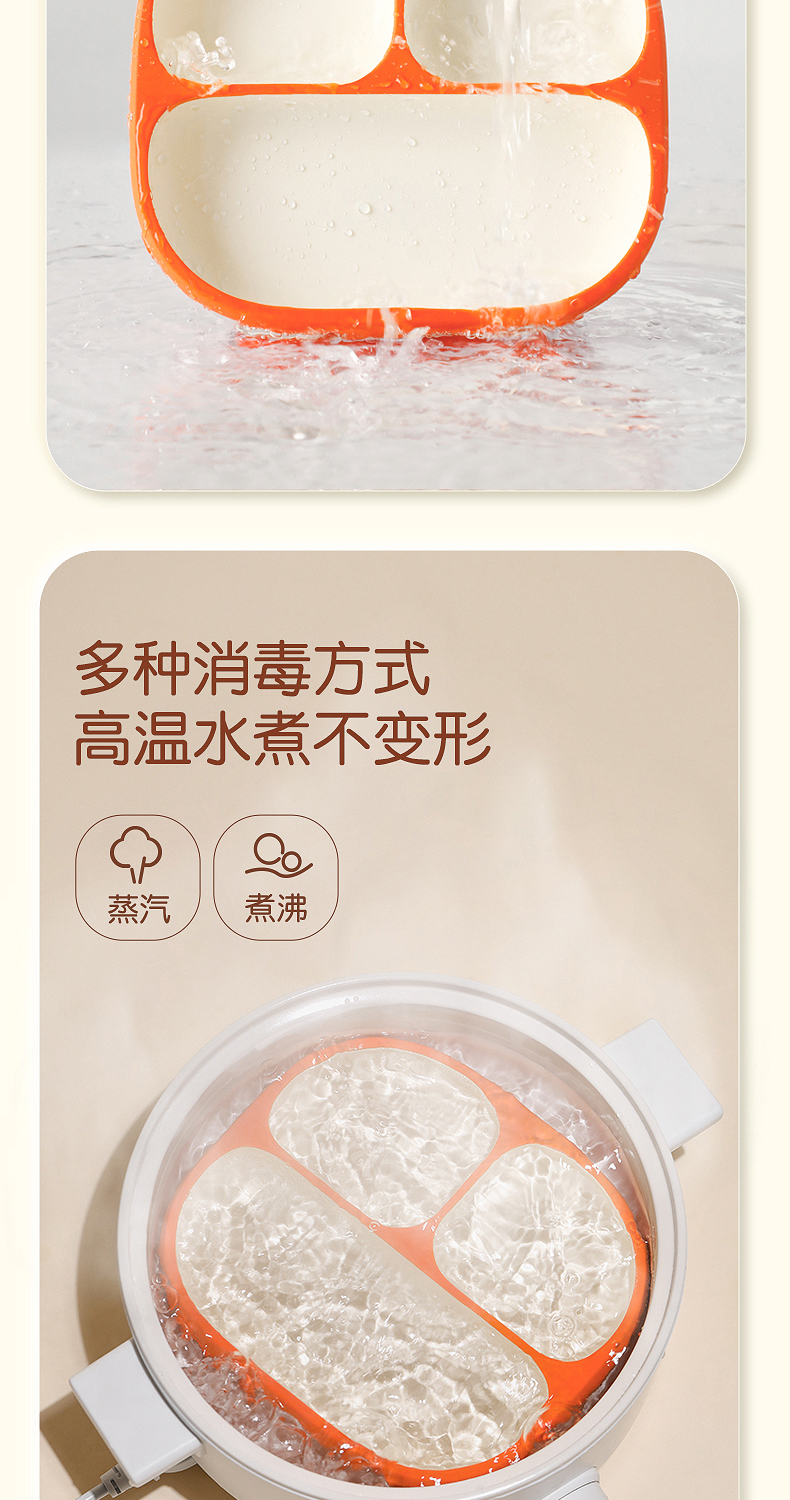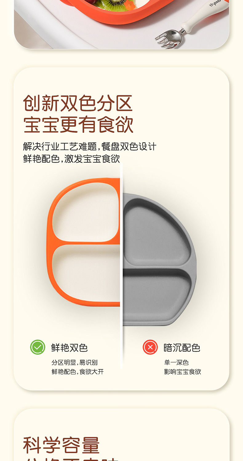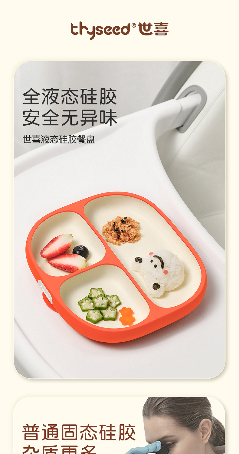 世喜宝宝餐盘儿童 硅胶婴儿吸盘式碗 辅食分格餐盘一体式吃饭餐具