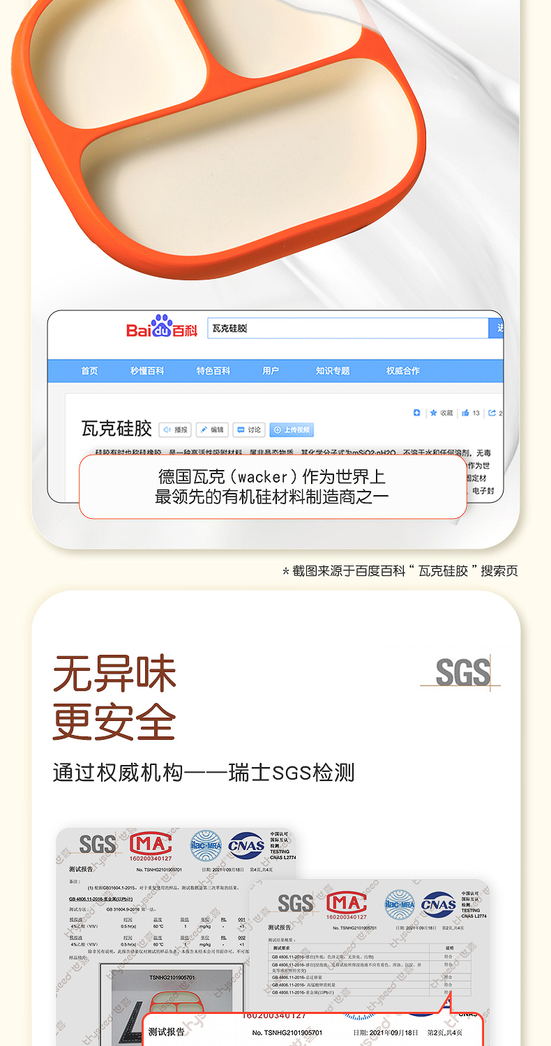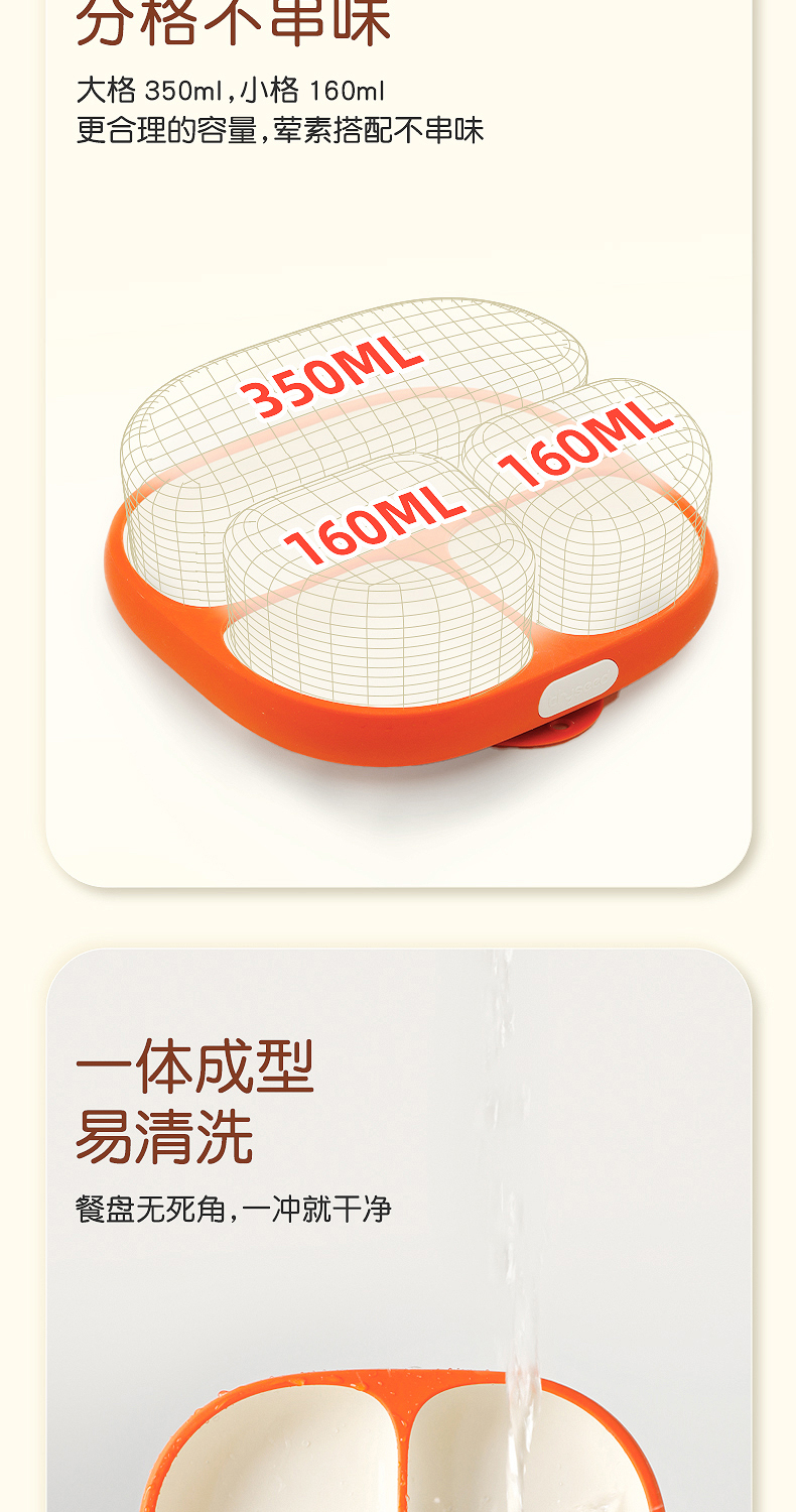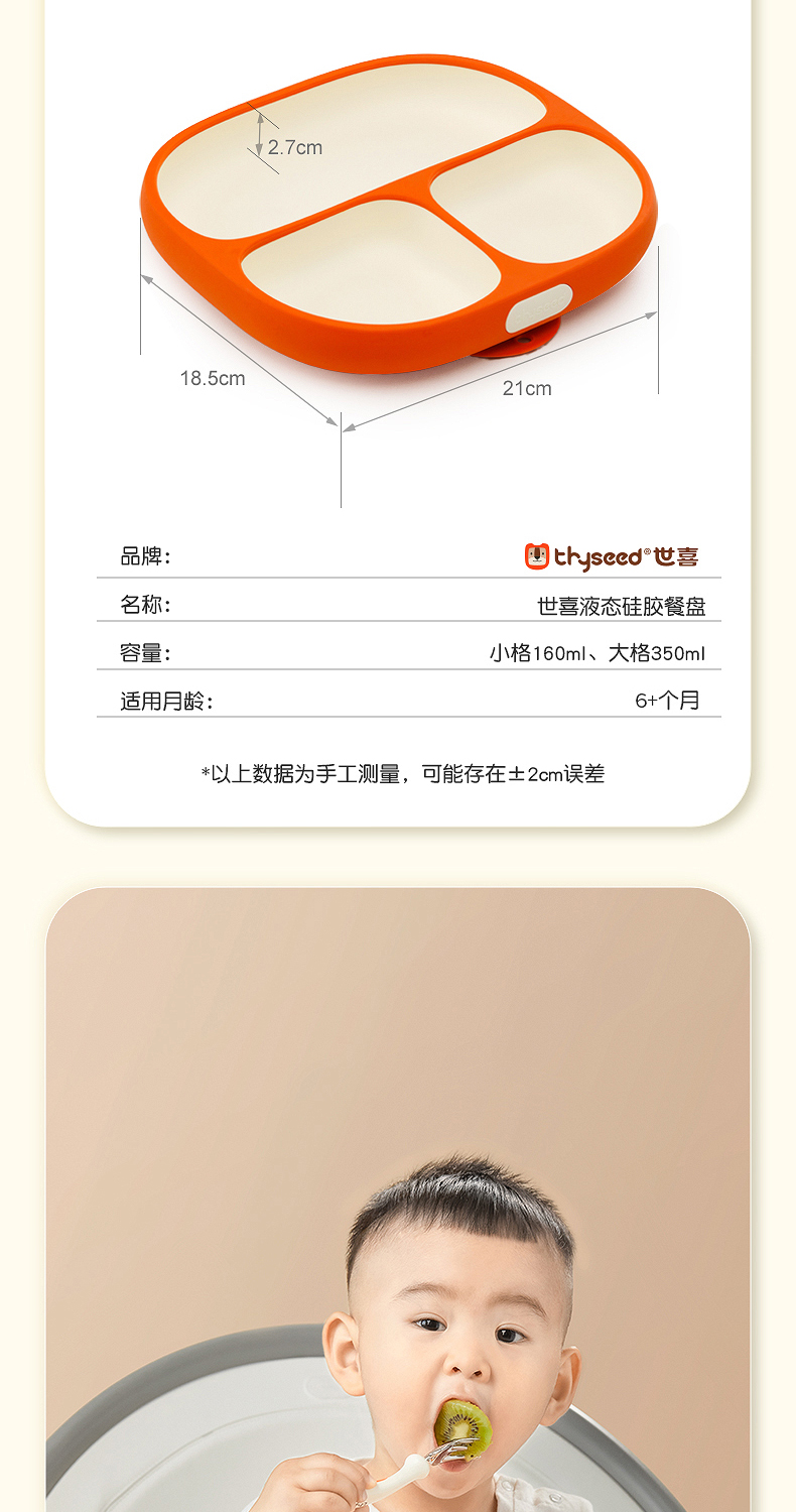 世喜宝宝餐盘儿童 硅胶婴儿吸盘式碗 辅食分格餐盘一体式吃饭餐具