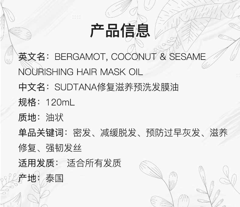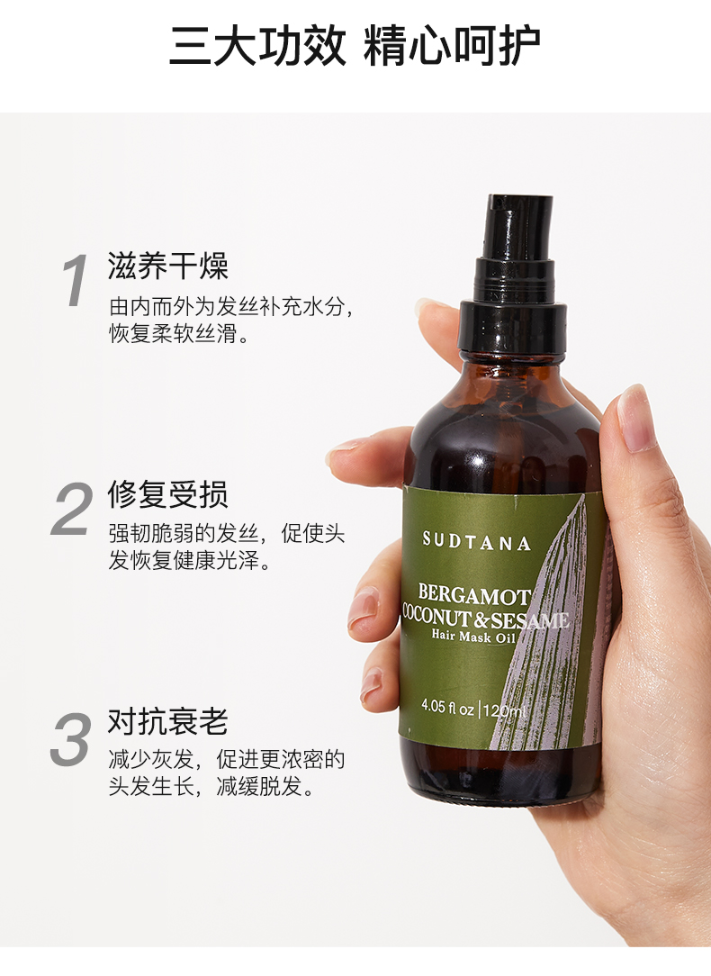 油扁塌别来沾边!sudtana佛手柑椰子预洗发油120ml 增亮发丝光泽 恢复强韧弹性
