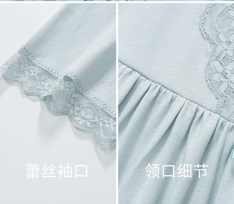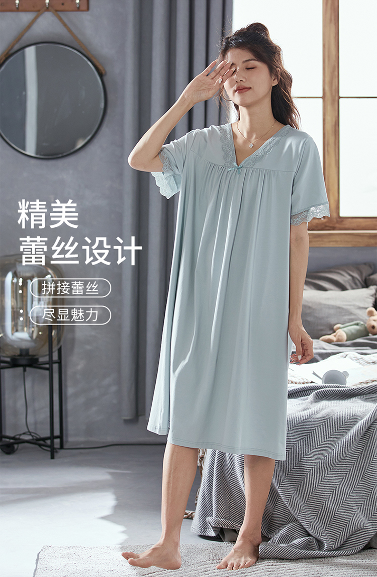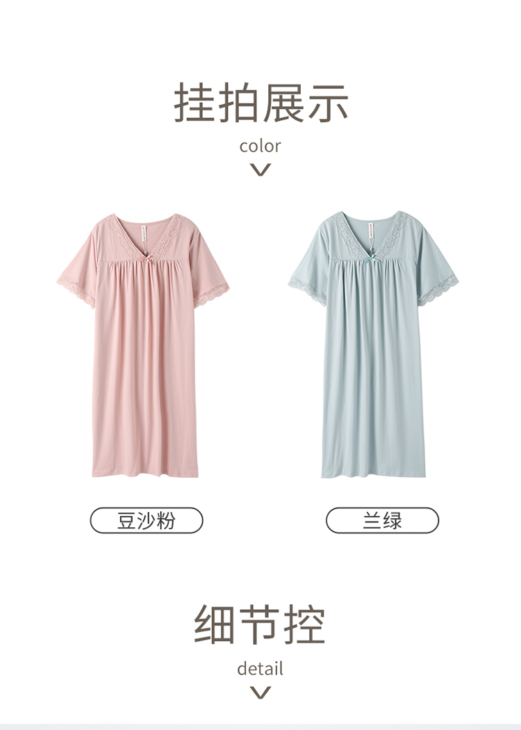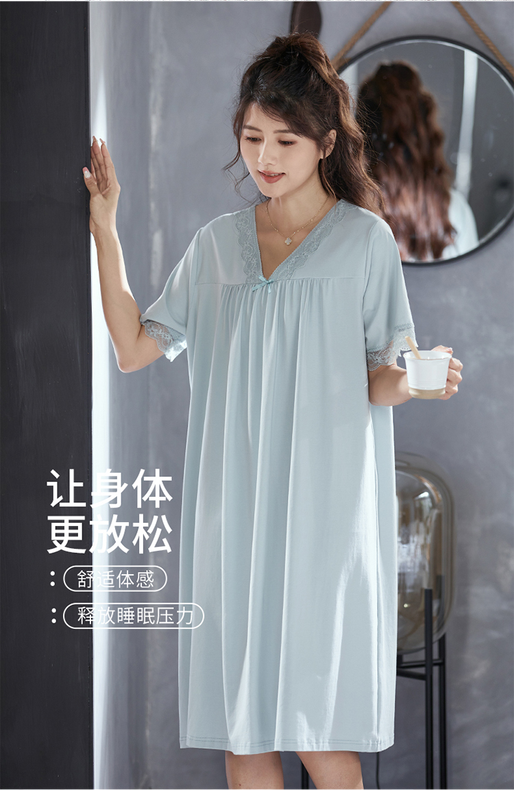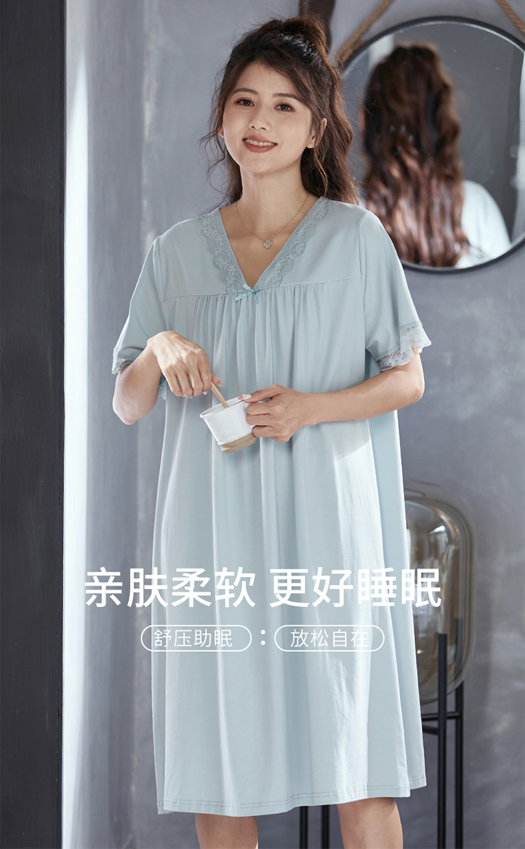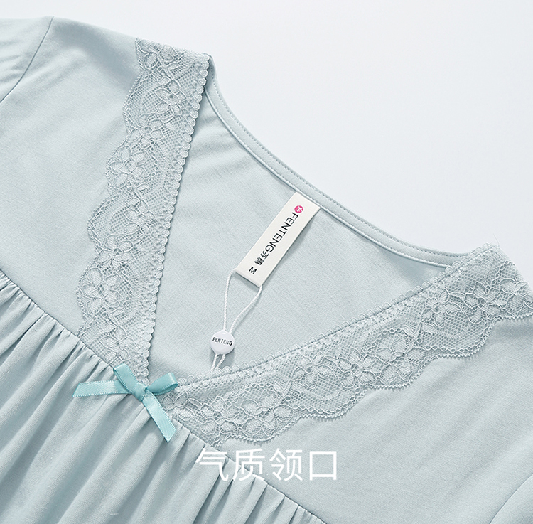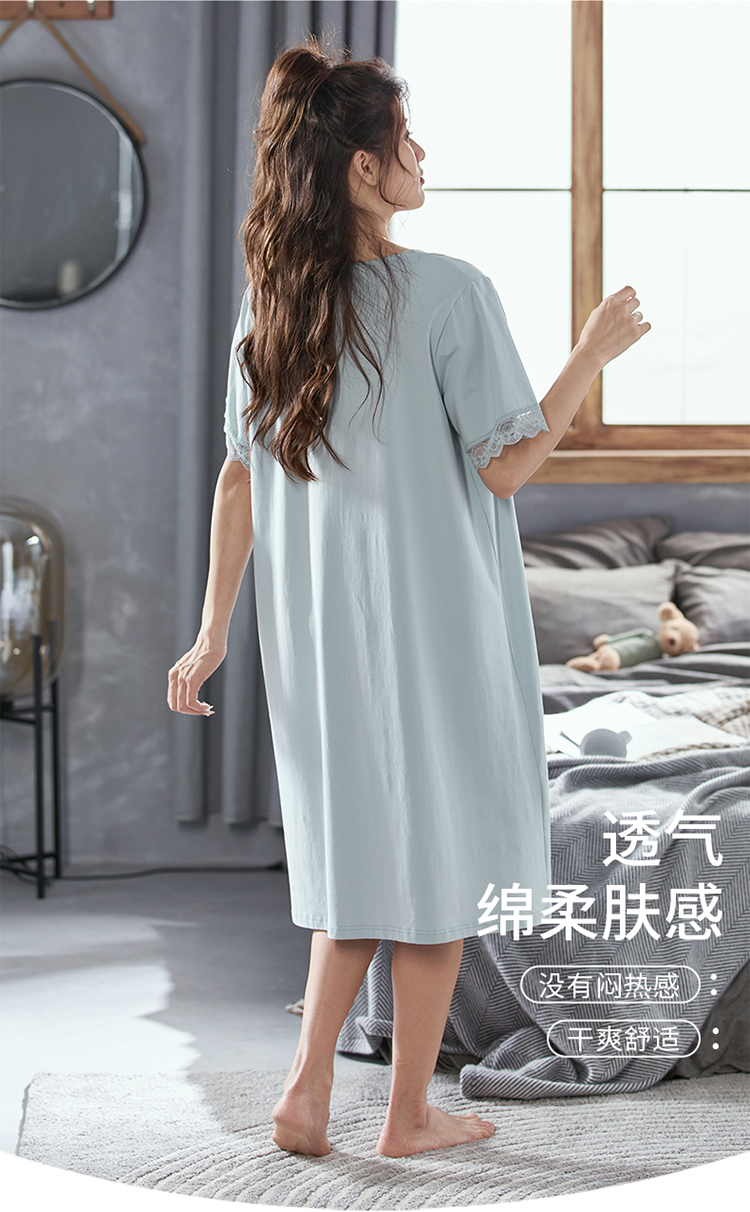 芬腾睡裙女士纯棉短袖夏季薄款中长裙休闲睡衣宽松大码全棉家居服