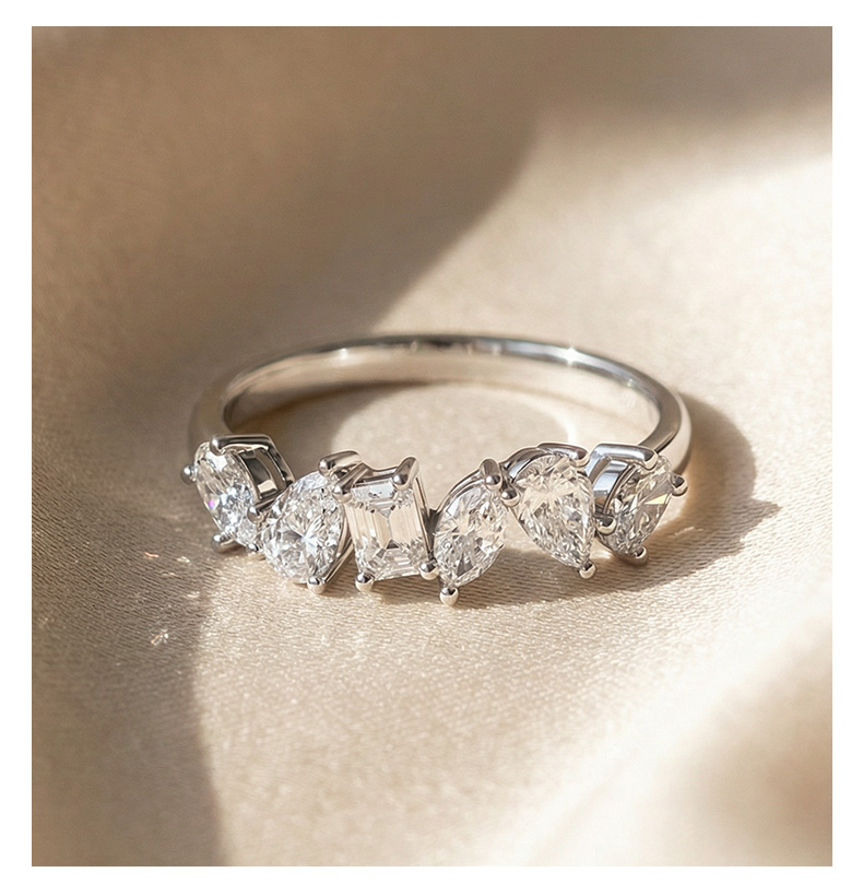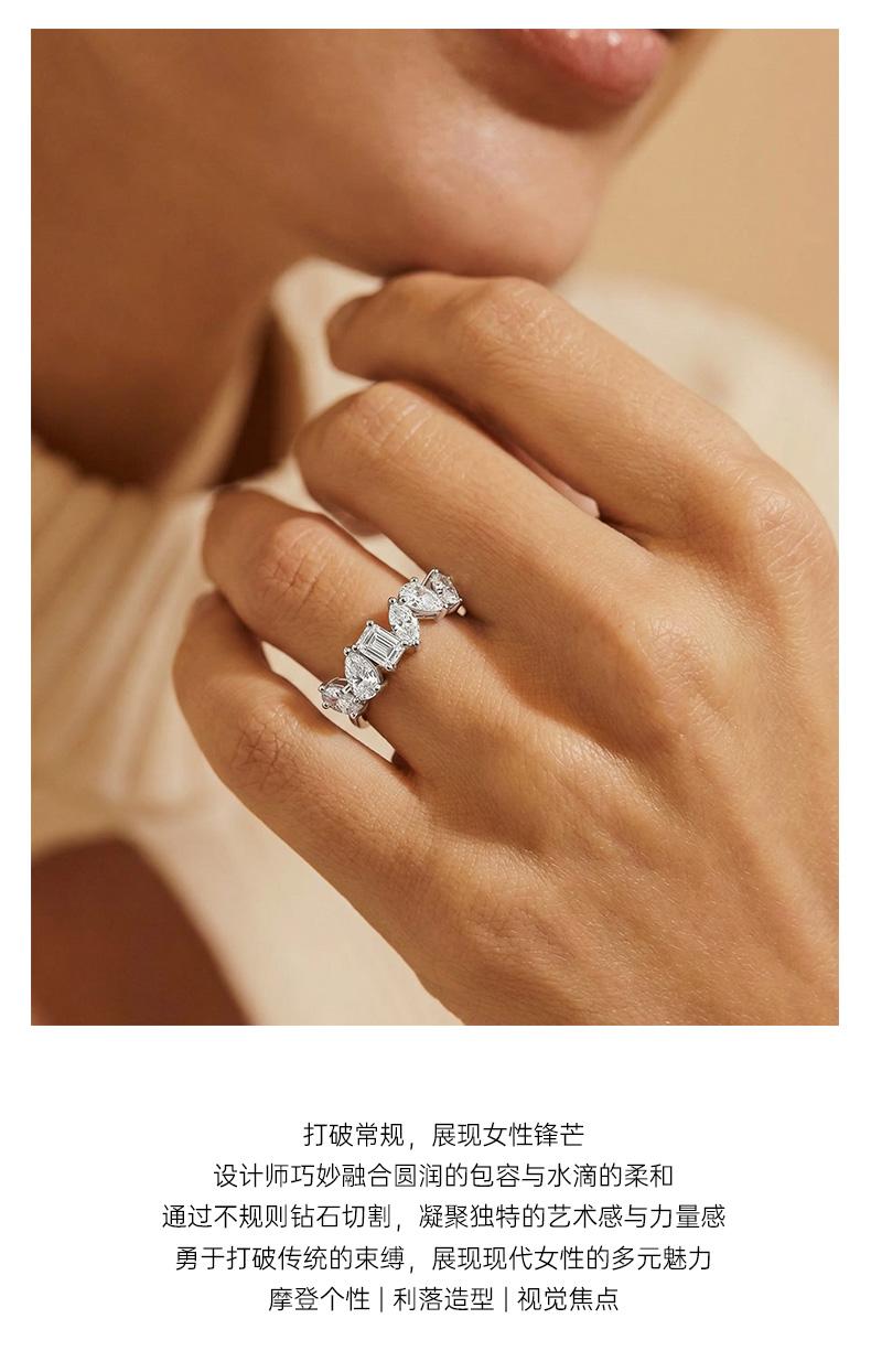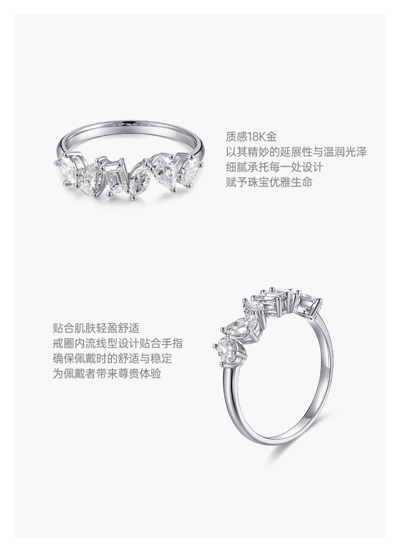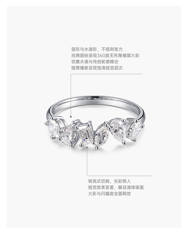 ShiningHouse[培育] 18k金钻石戒指 椭圆形水滴形1克拉钻人工真钻人造钻石K金戒指排钻戒指时尚钻石戒指悦己送礼臻选【此商品不支持7天无理由退货退款】预计3日发货