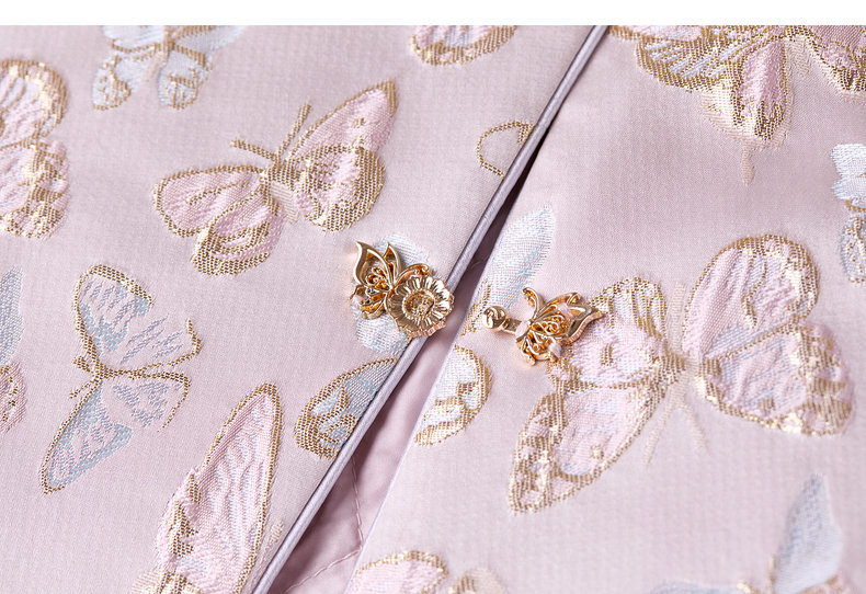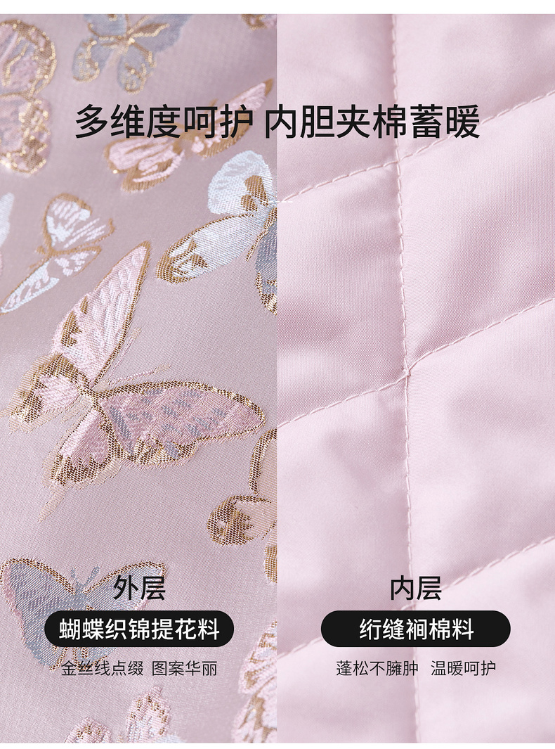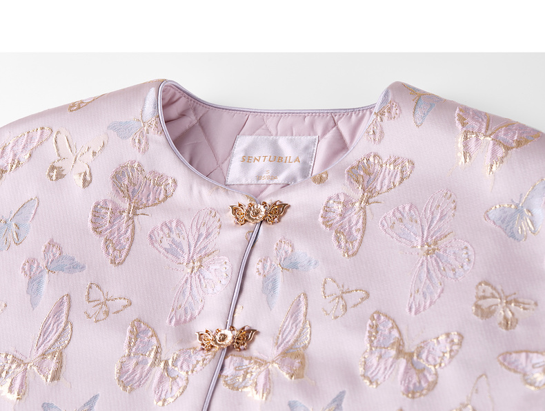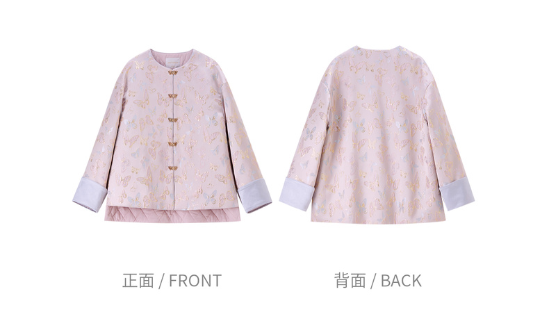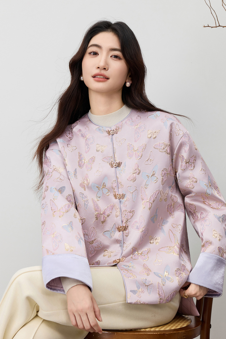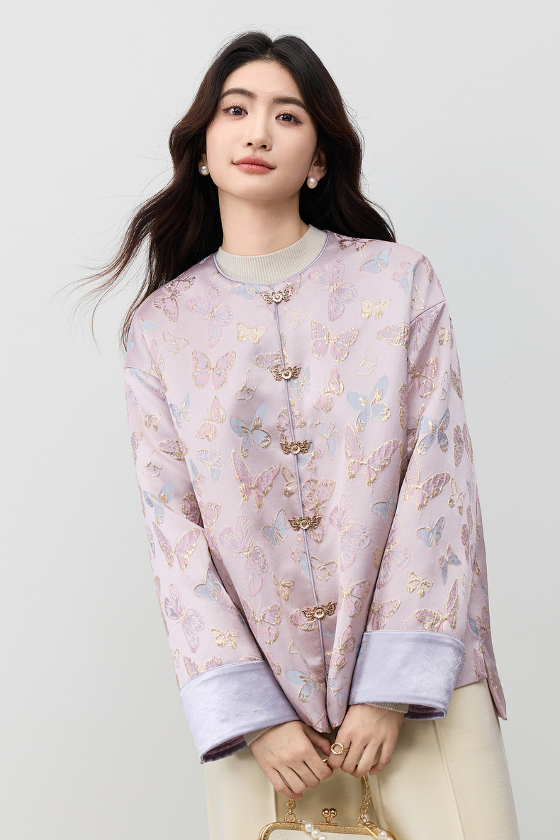 【内购】【夹棉保暖】优雅国风盘扣圆领蝴蝶织锦提花不规则下摆宽松外套-154WP3994