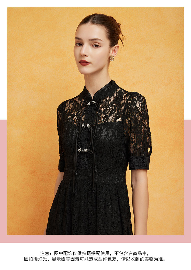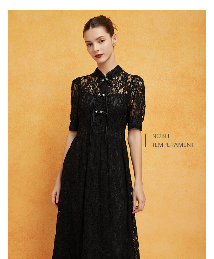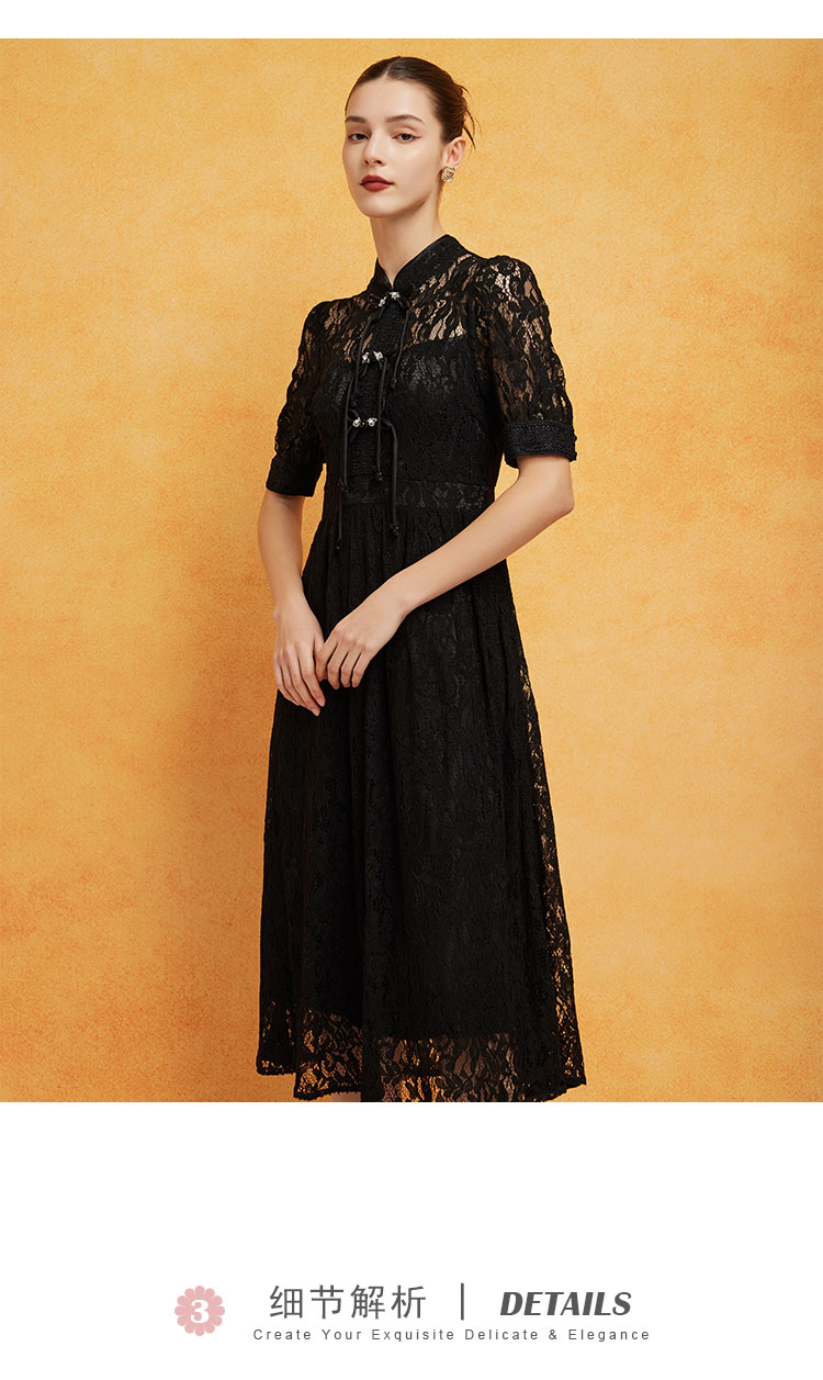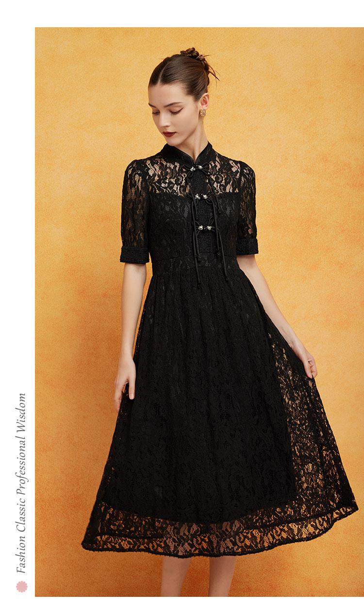 PF8G5斯尔丽2024新款浪漫蕾丝改良国风精致流苏盘扣收腰放摆显瘦连衣裙