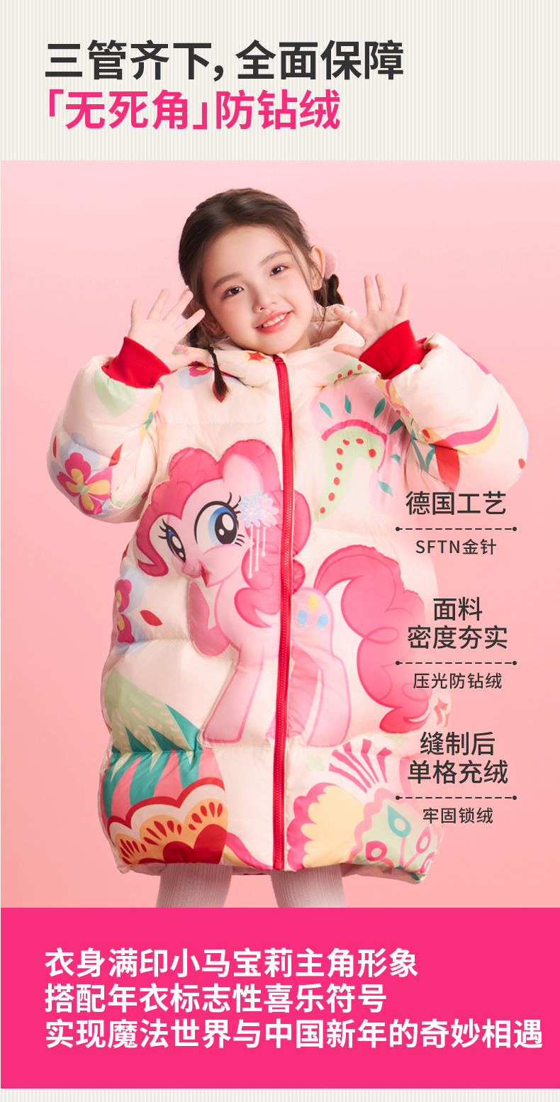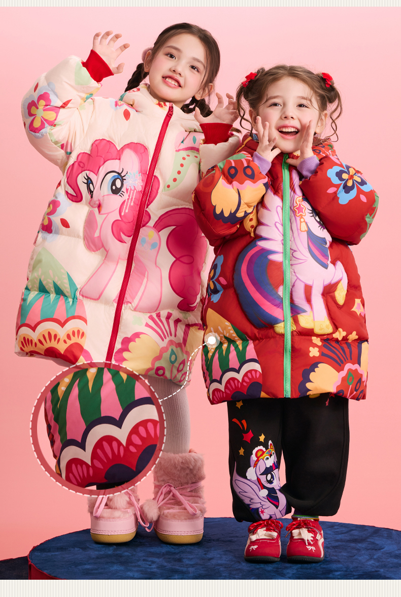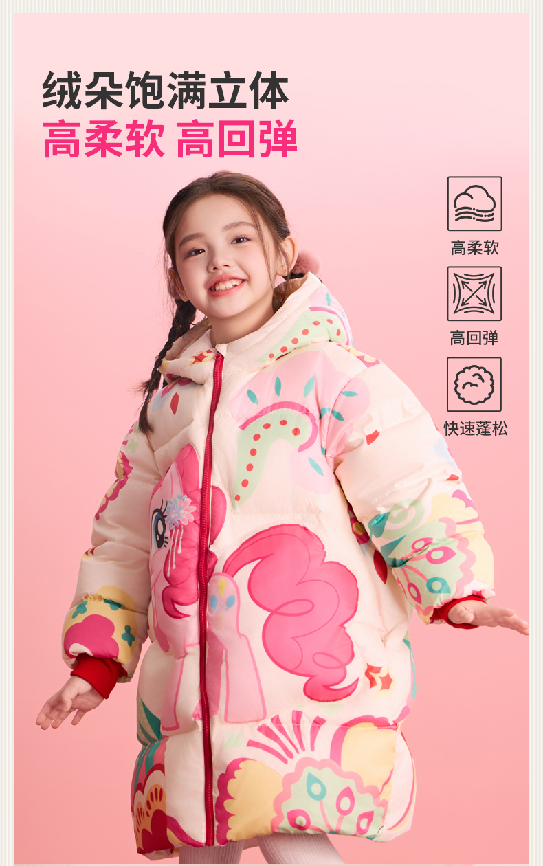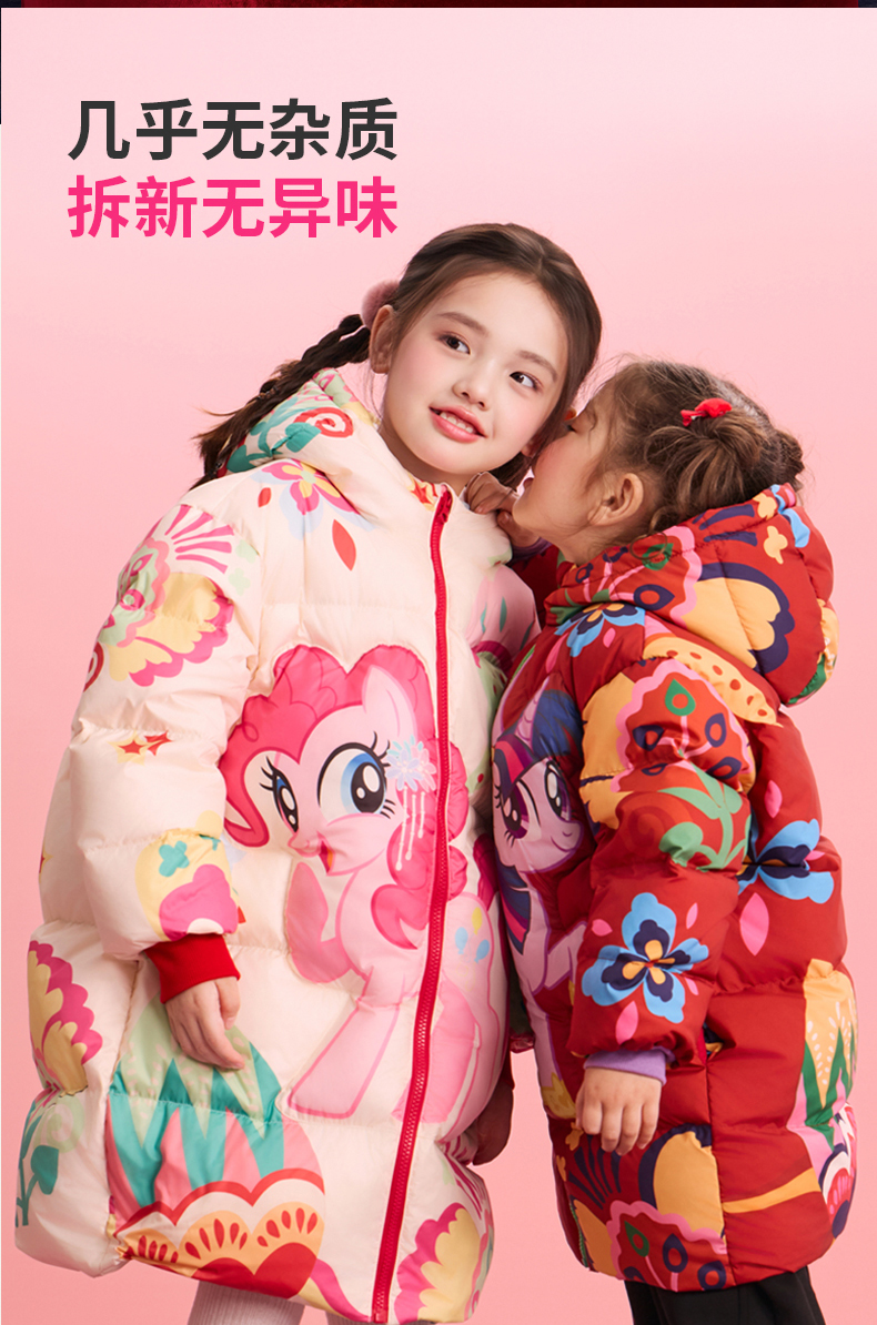 【云优选】小马宝莉联名年衣童装羽绒服冬装新款小马宝莉新年花朵羽绒服