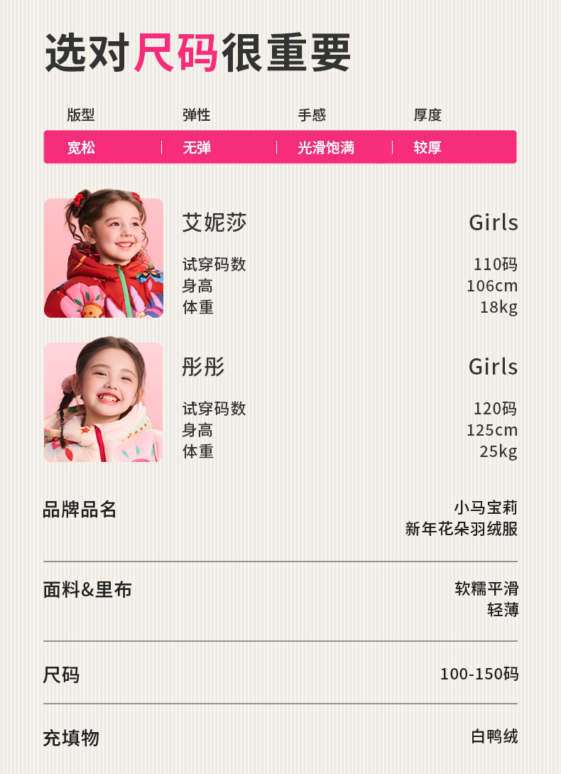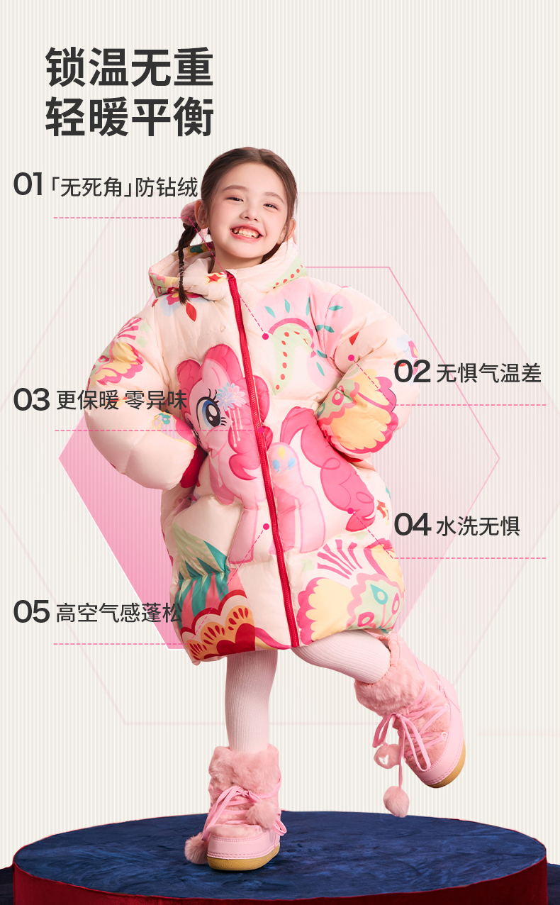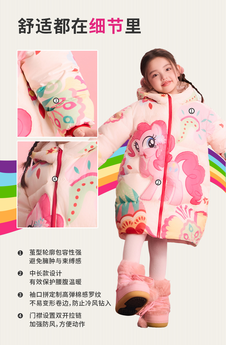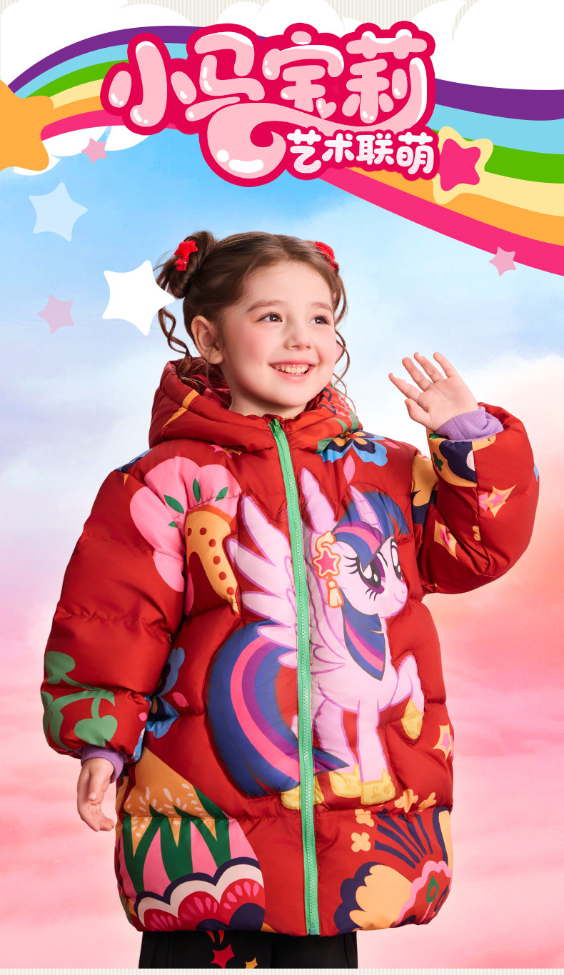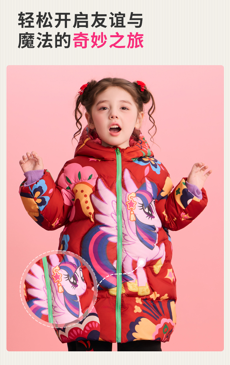 【云优选】小马宝莉联名年衣童装羽绒服冬装新款小马宝莉新年花朵羽绒服