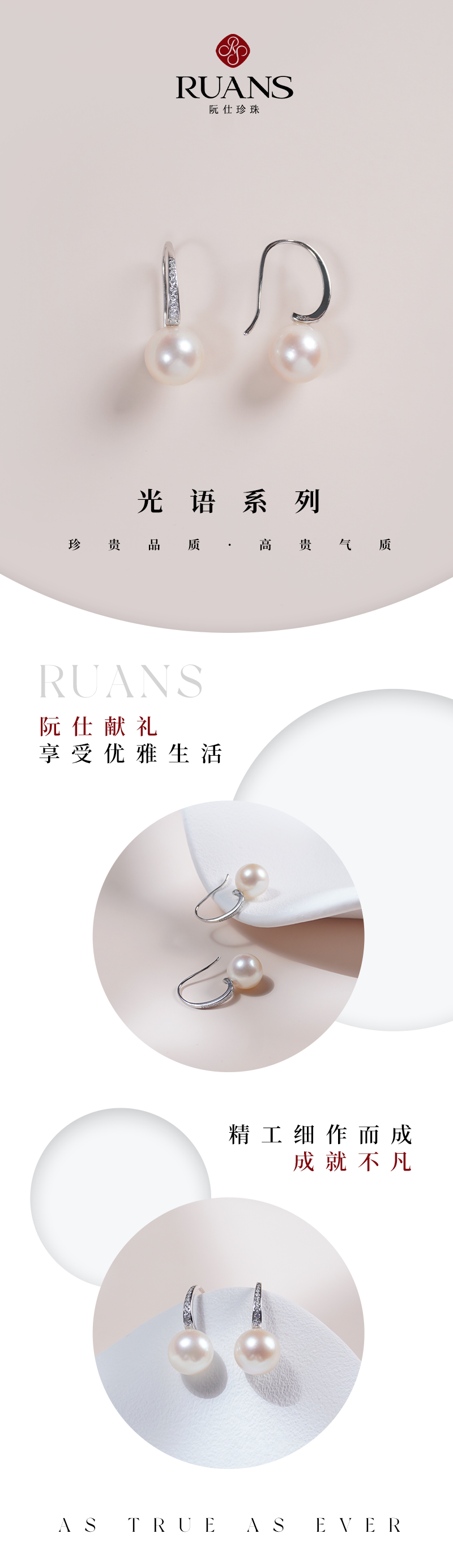 阮仕光语系列S925银日本珠AKOYA珍珠耳饰 9-9.5mm 正圆 微瑕 极强光 ES2247GYA