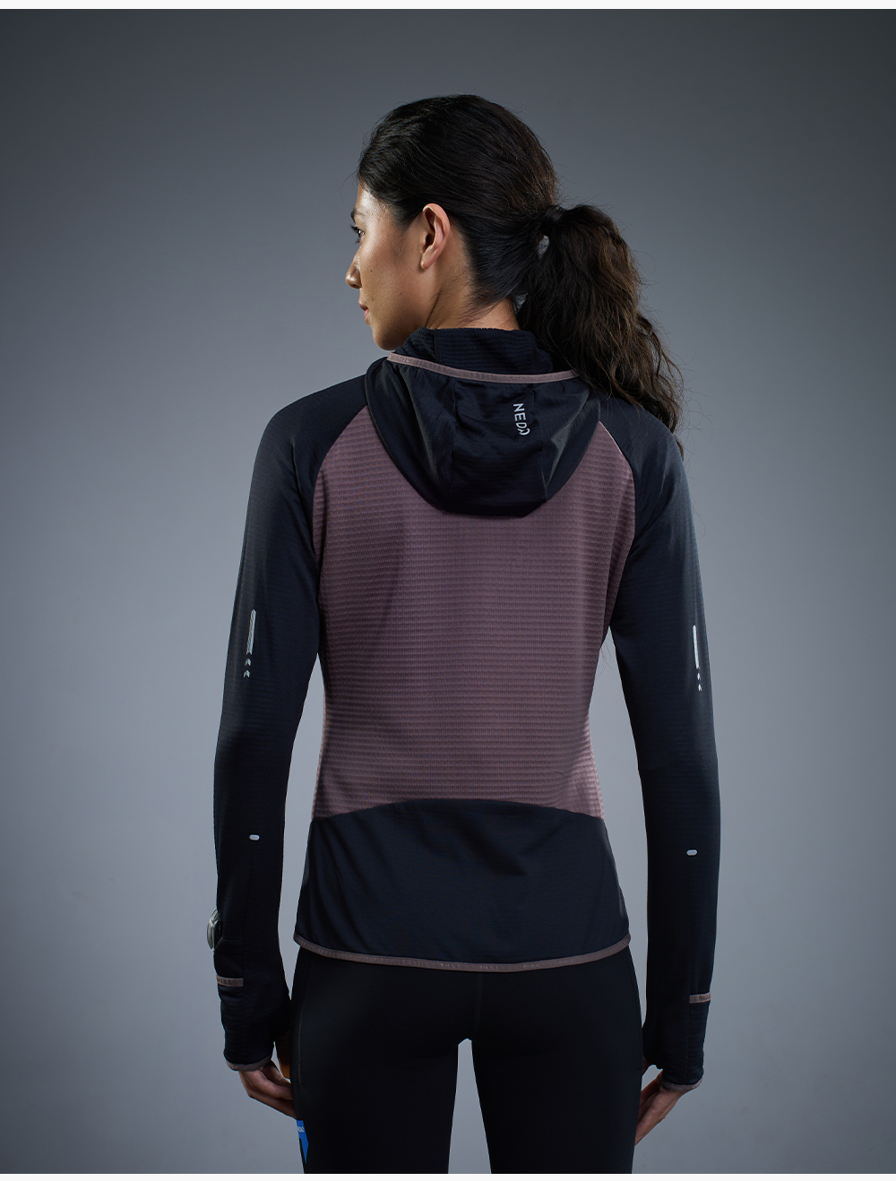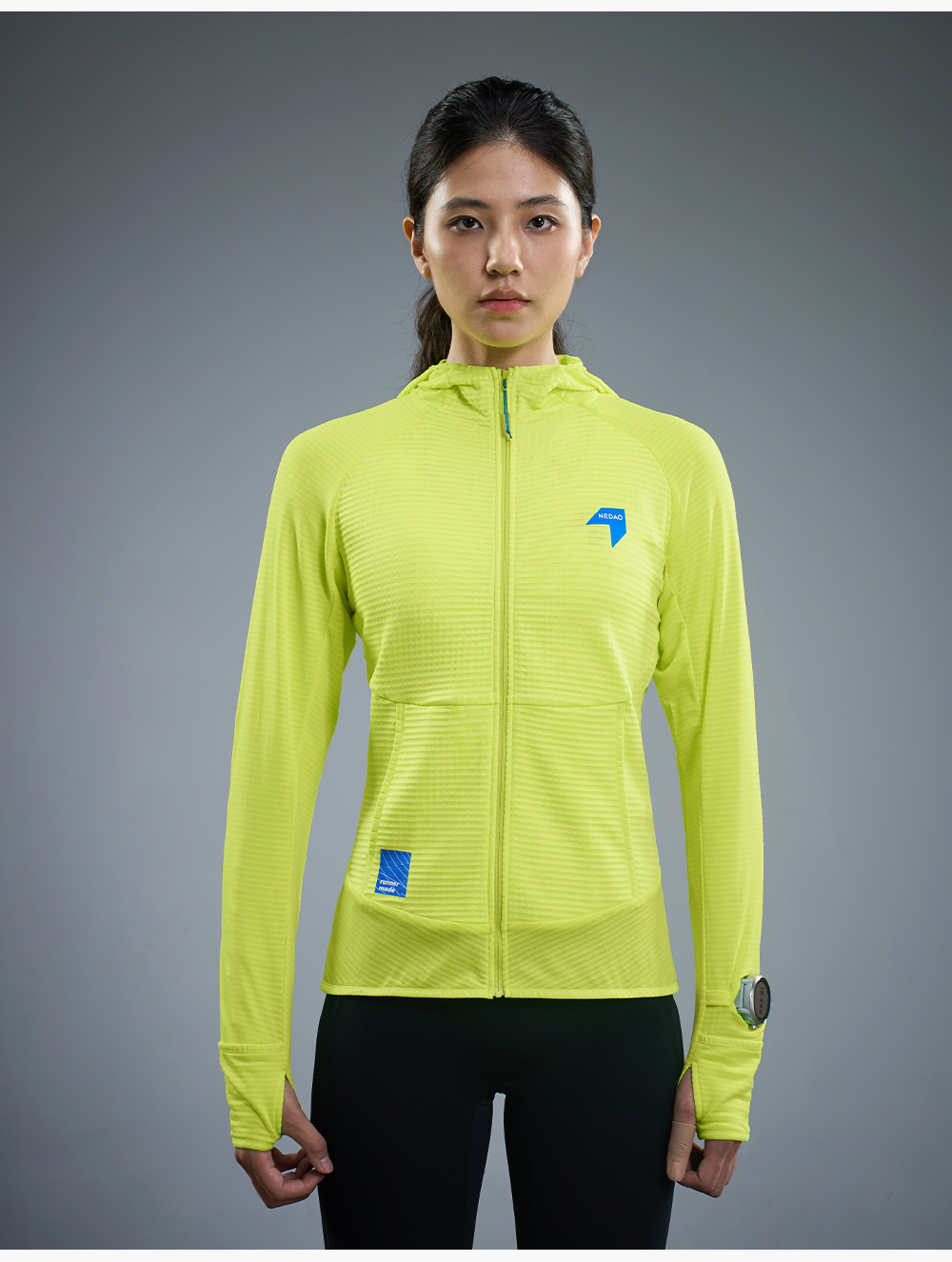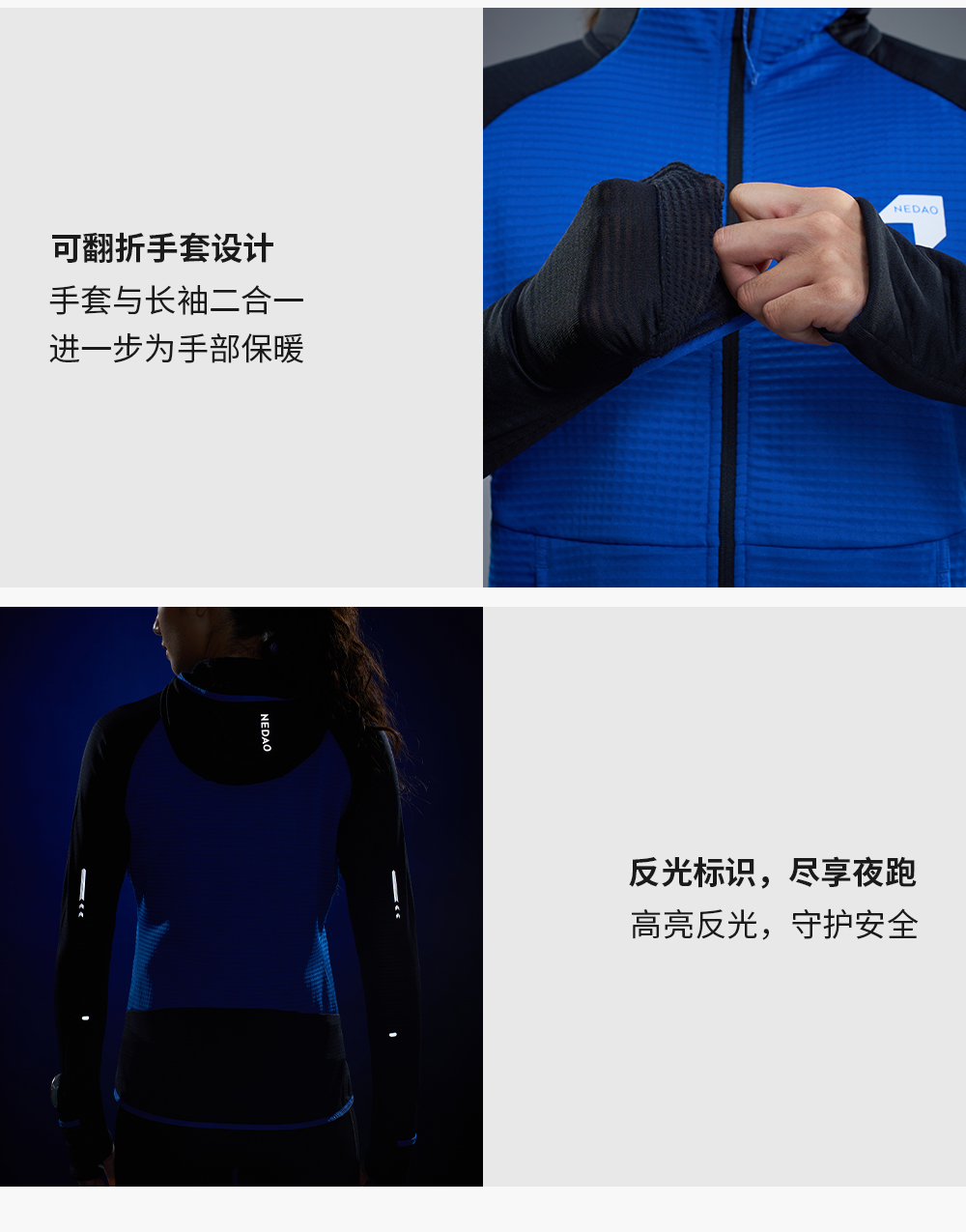 NEDAO内道新品动能粒拼接拉链带帽外套保暖吸湿女士马拉松越野跑步长袖