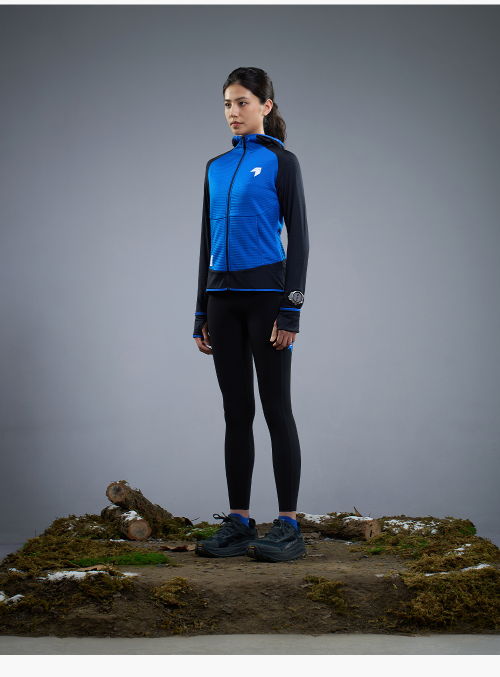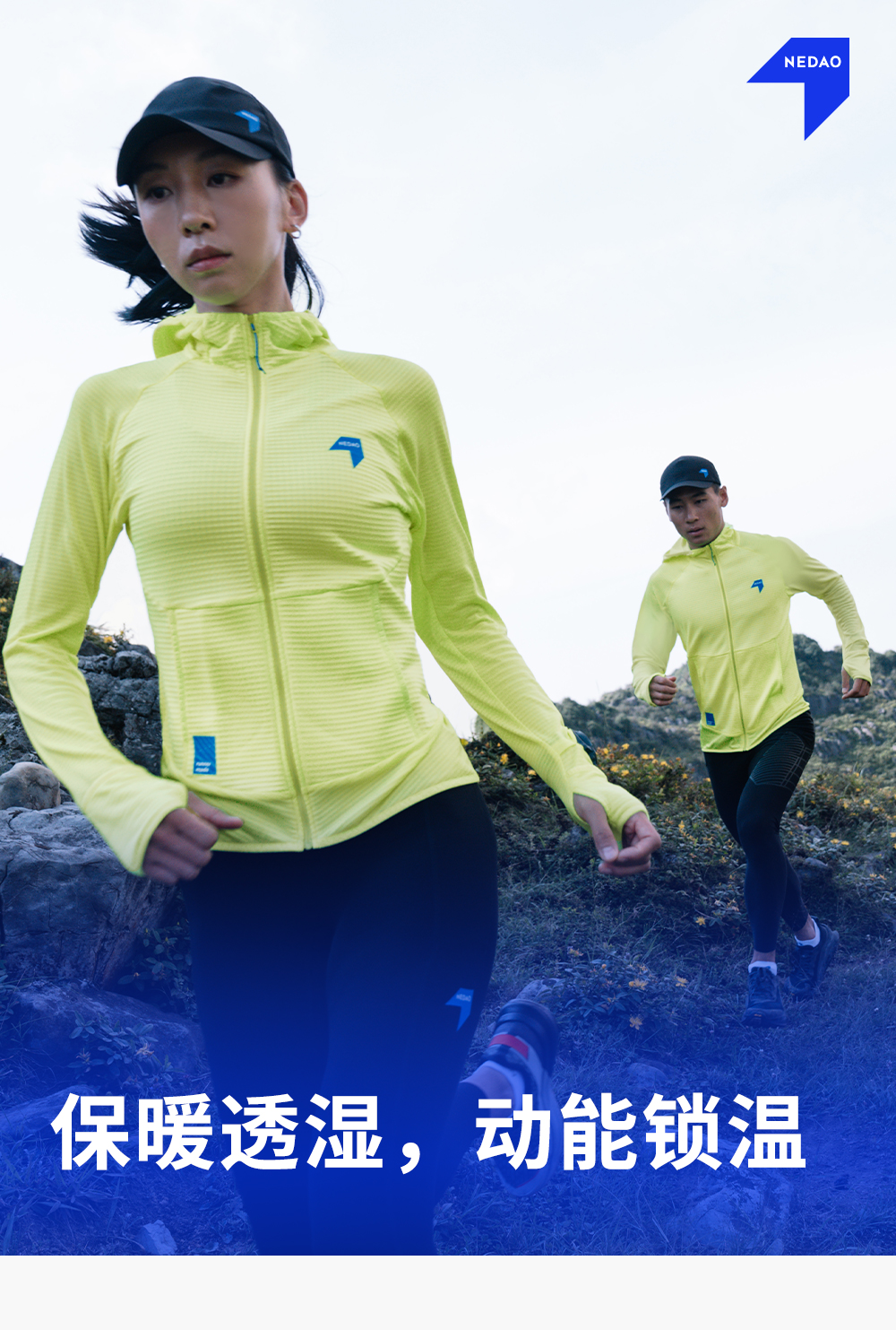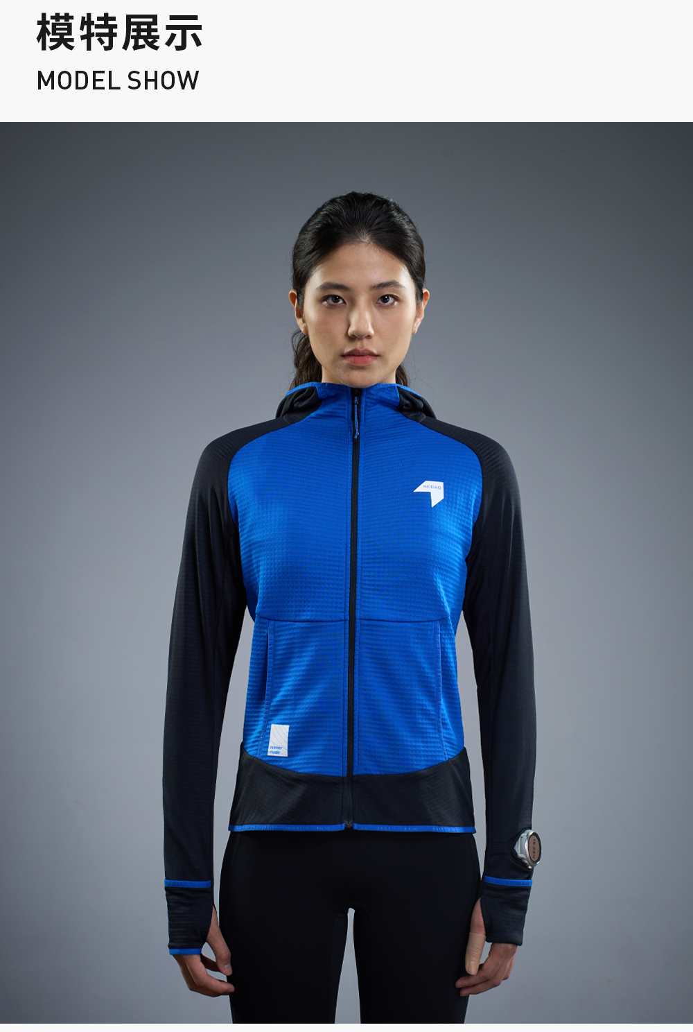 NEDAO内道新品动能粒拼接拉链带帽外套保暖吸湿女士马拉松越野跑步长袖