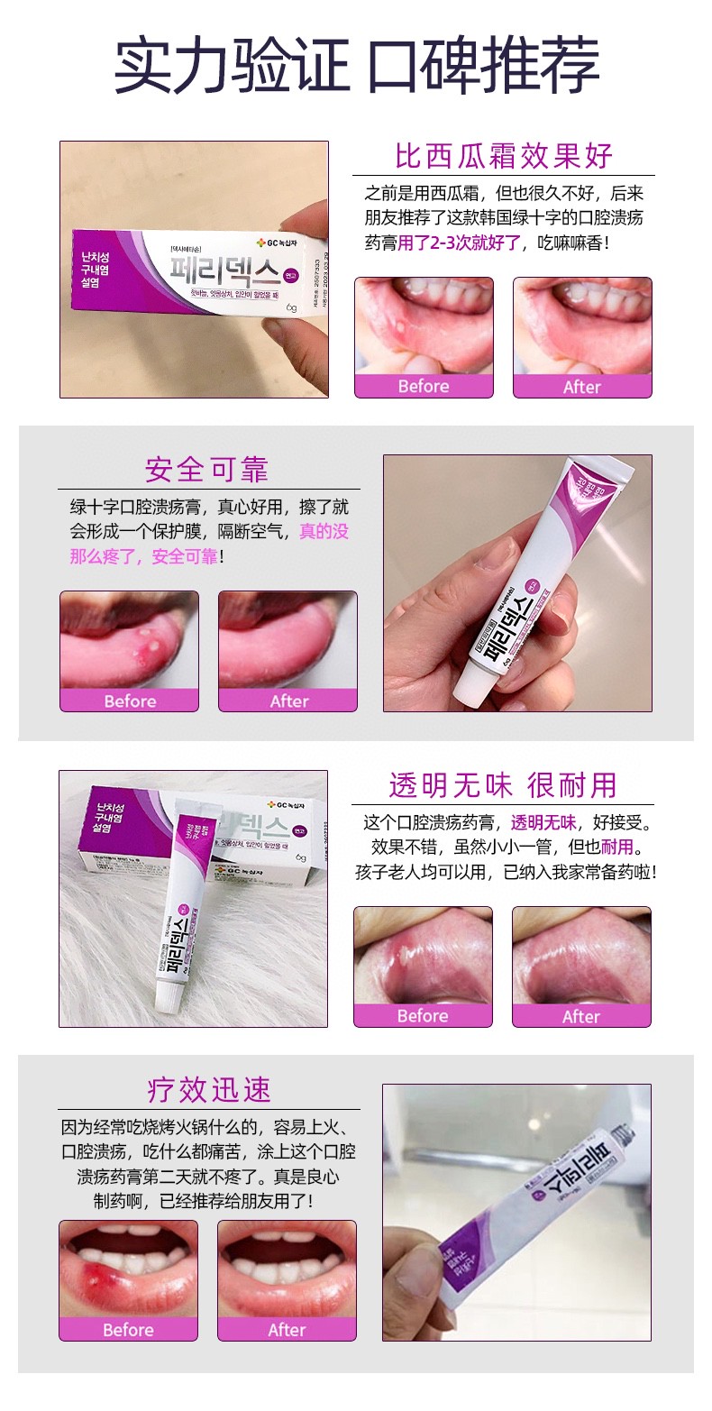 韩国peridex绿十字口腔溃疡膏!家中常备立竿见影!