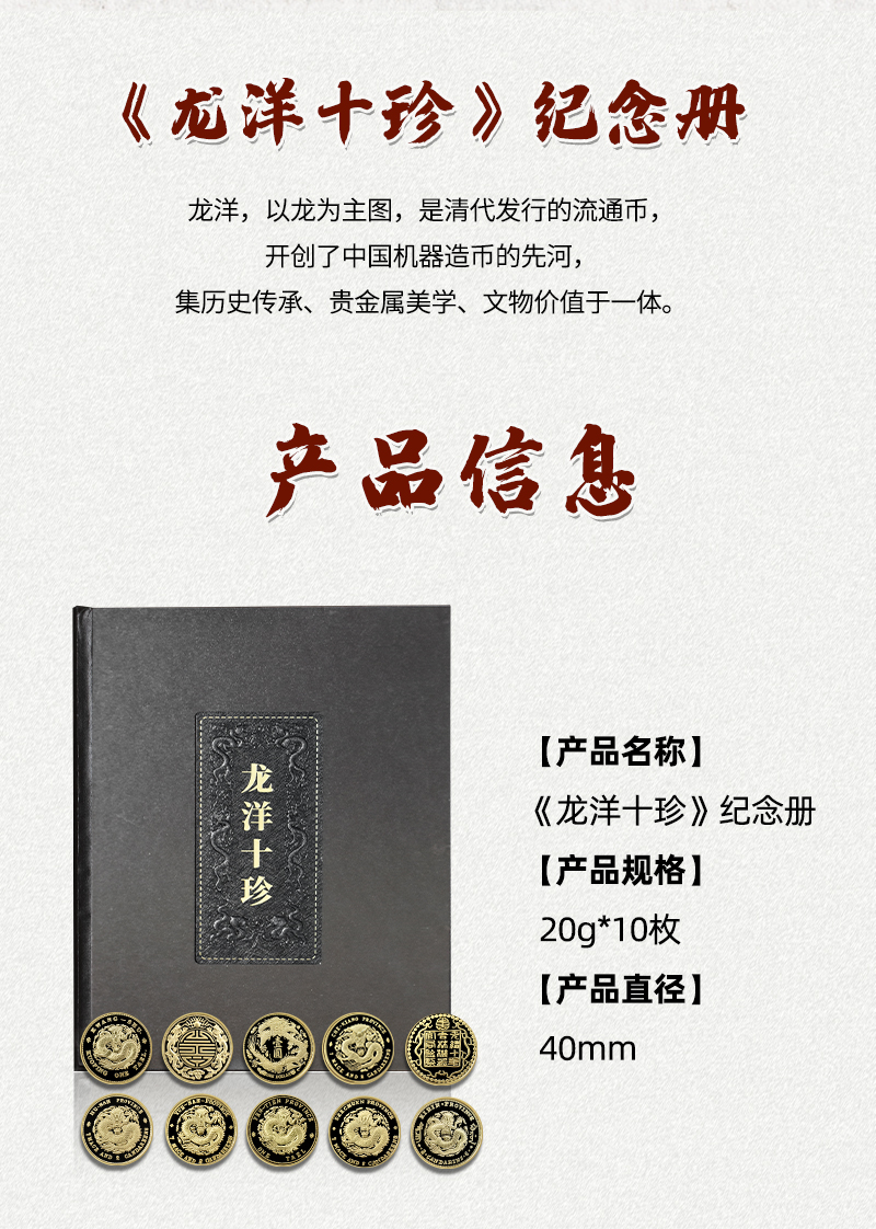 【现货】《龙洋十珍》清代十大货币纪念章珍藏册(10枚)