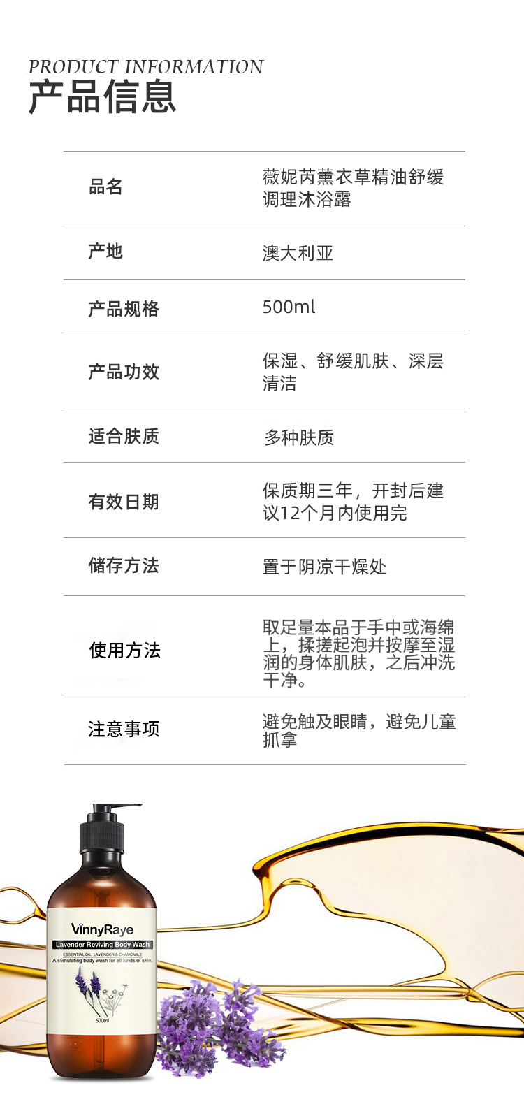 澳洲原装进口薇妮芮 澳洲原装进品沐浴露持久留香男女薰衣草精油舒缓调理沐浴乳