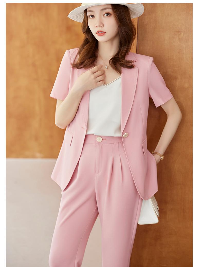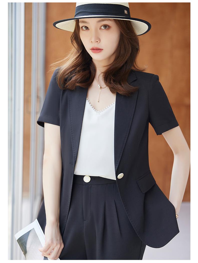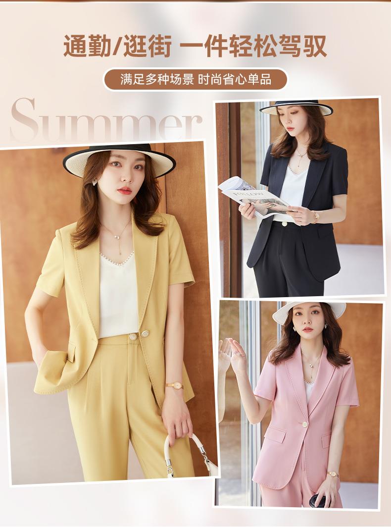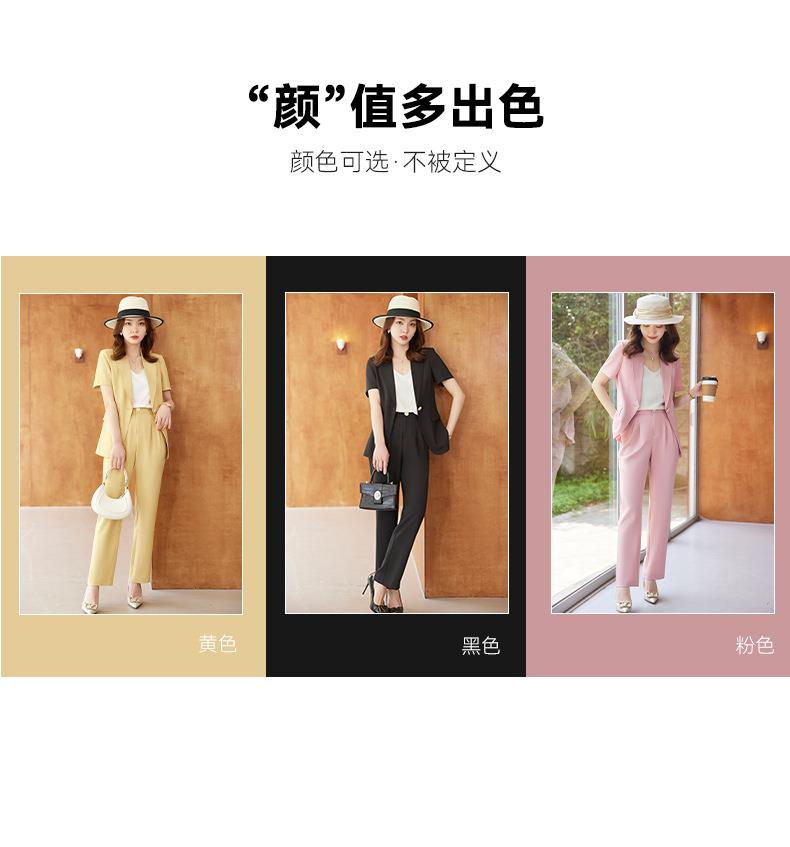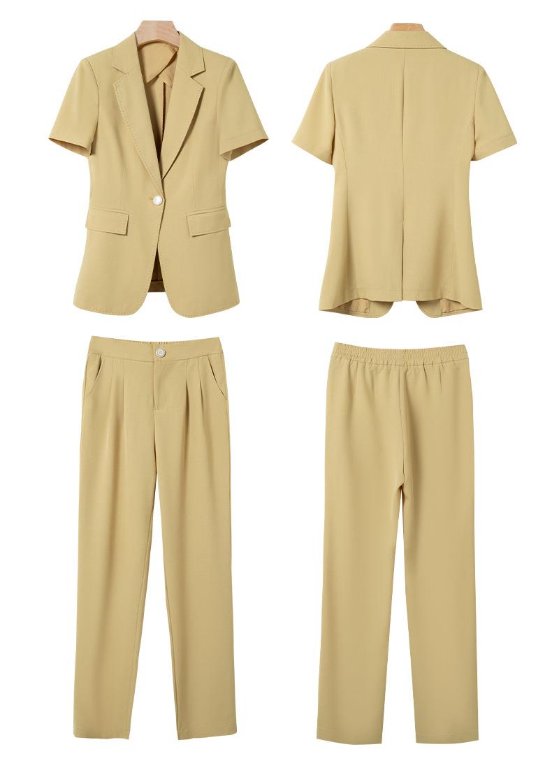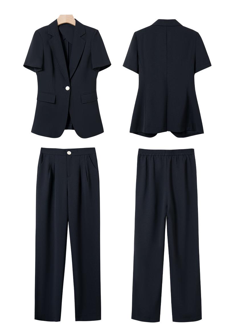 娜璐多 薄款西装套装女夏季小个子2023新款设计感气质显瘦休闲长裤两件套