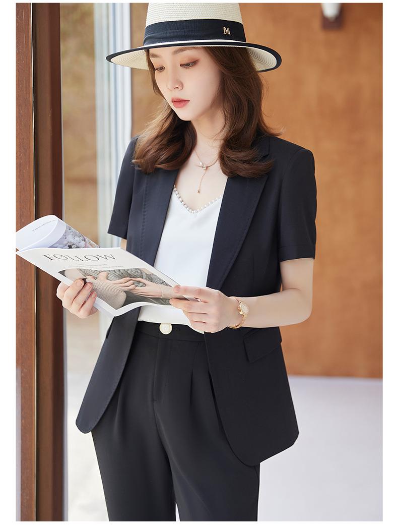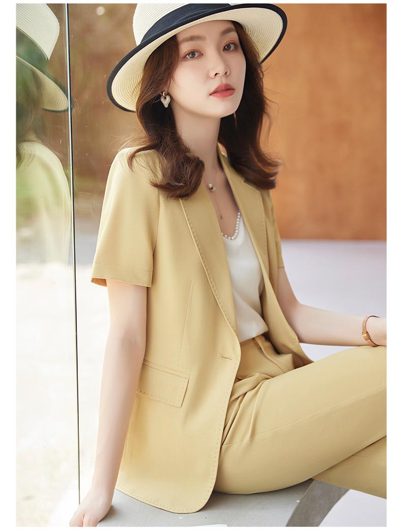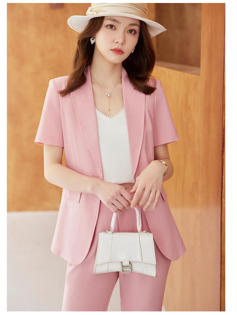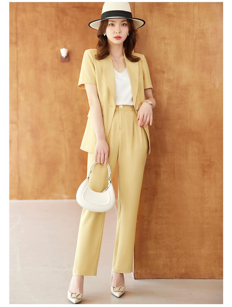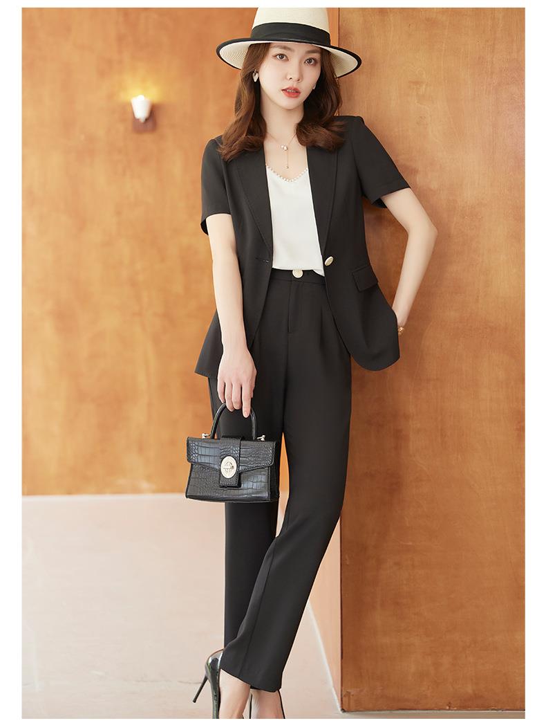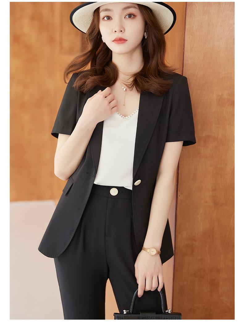 娜璐多 薄款西装套装女夏季小个子2023新款设计感气质显瘦休闲长裤两件套