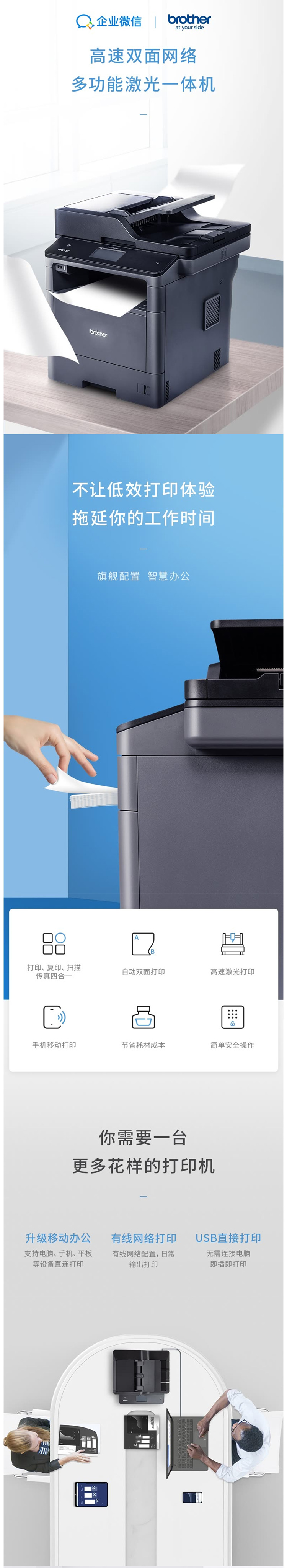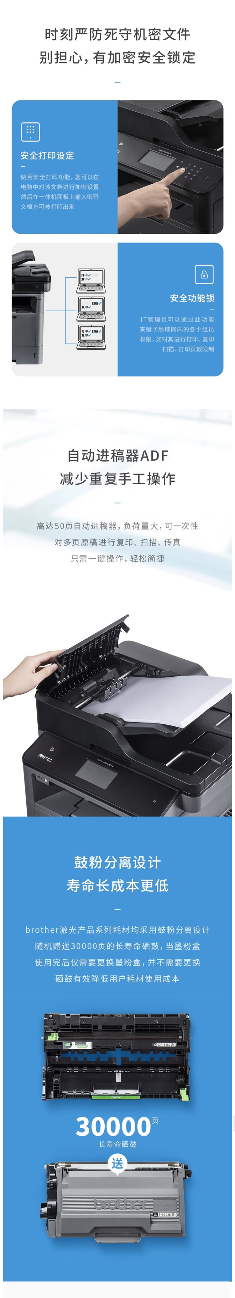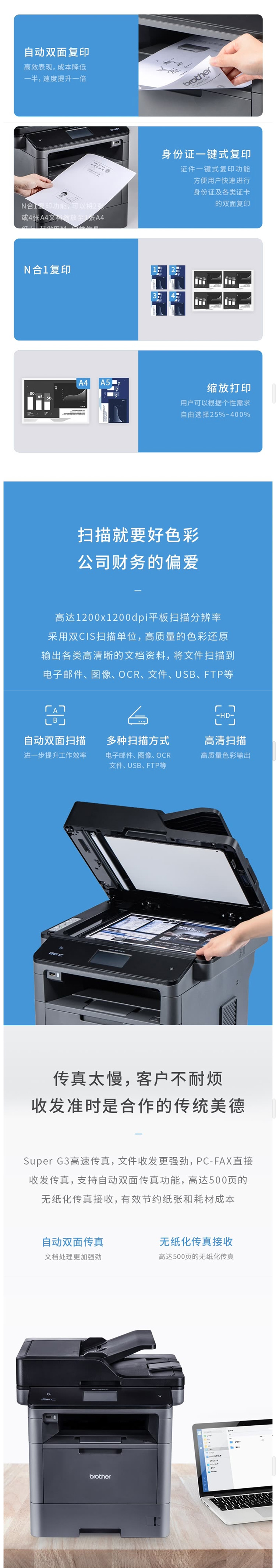 兄弟黑白激光多功能一体机 支持联网高速双面打印复印扫描传真MFC-8540DN