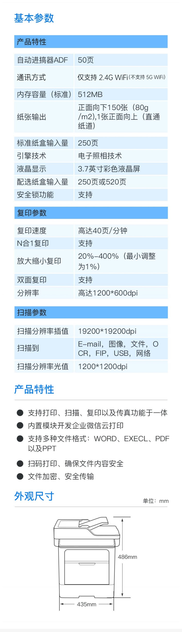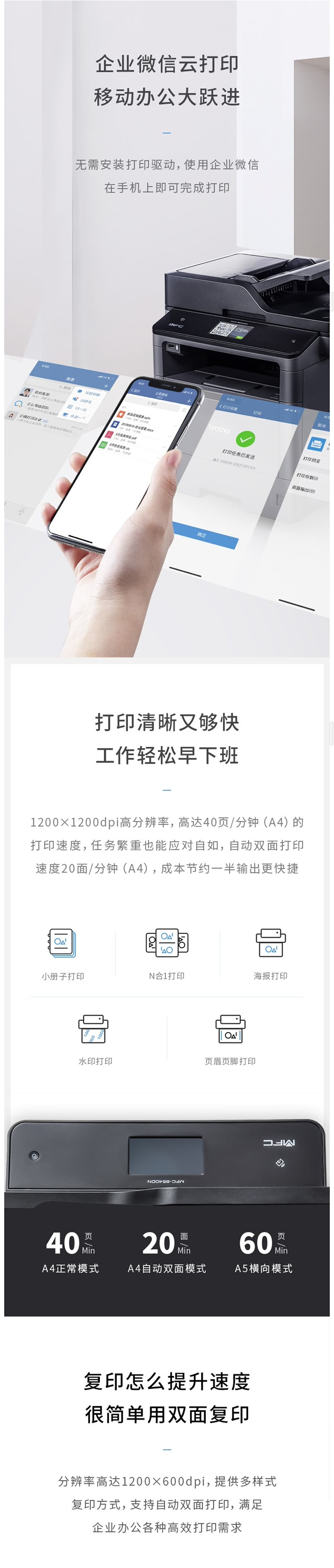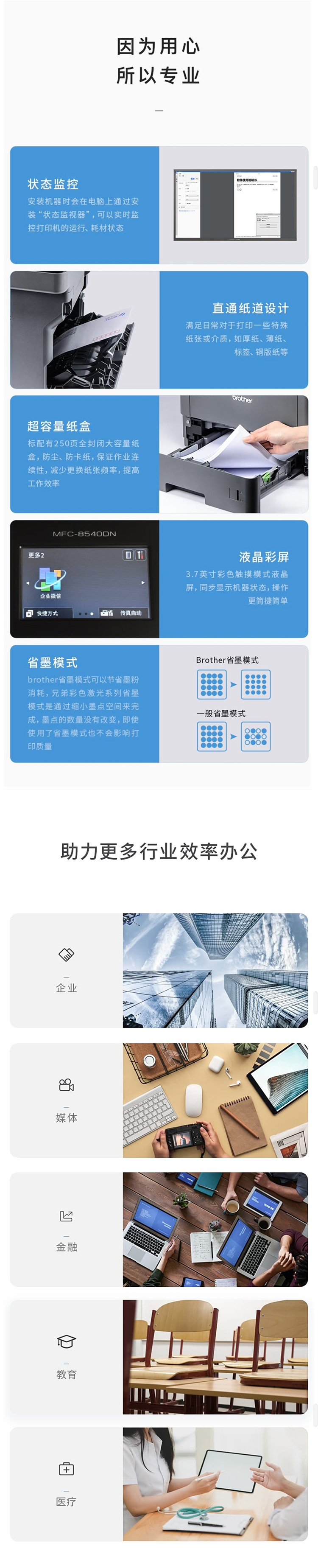 兄弟黑白激光多功能一体机 支持联网高速双面打印复印扫描传真MFC-8540DN