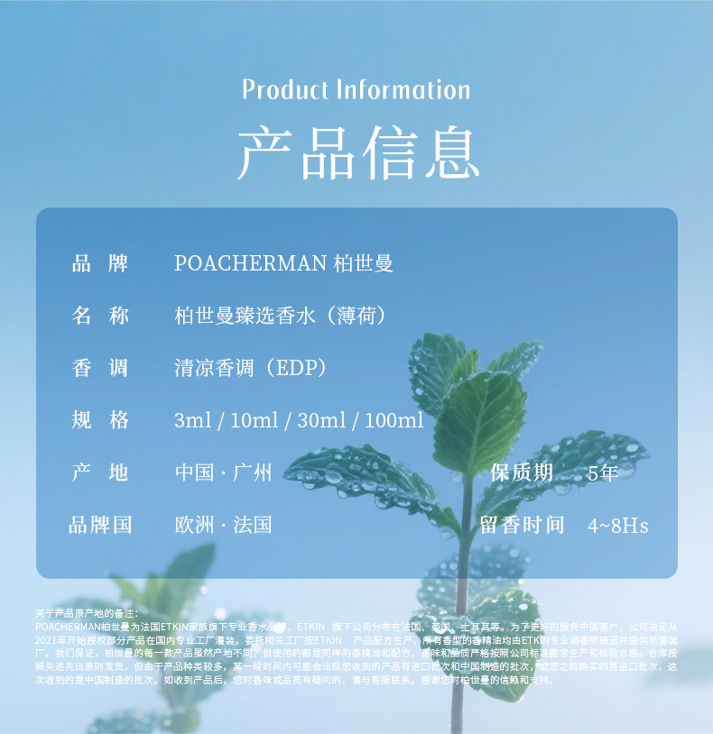 薄荷香水 Mint薄荷味香水香型小众清新冷调持久中性男女淡香香水