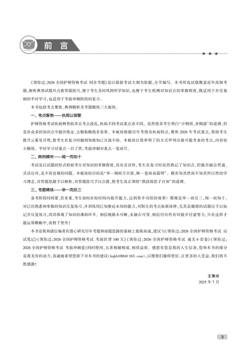 领你过 2026全国护师资格考试 同步考题 王秀玲 庄丽琴 主编 考试用书 2025职称考试 9787117385862 人民卫生出版社
