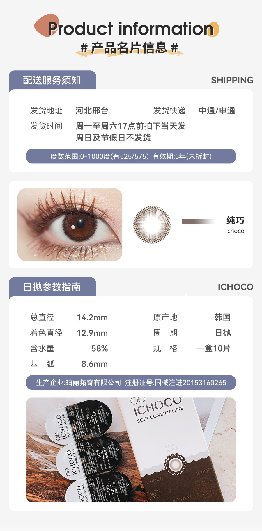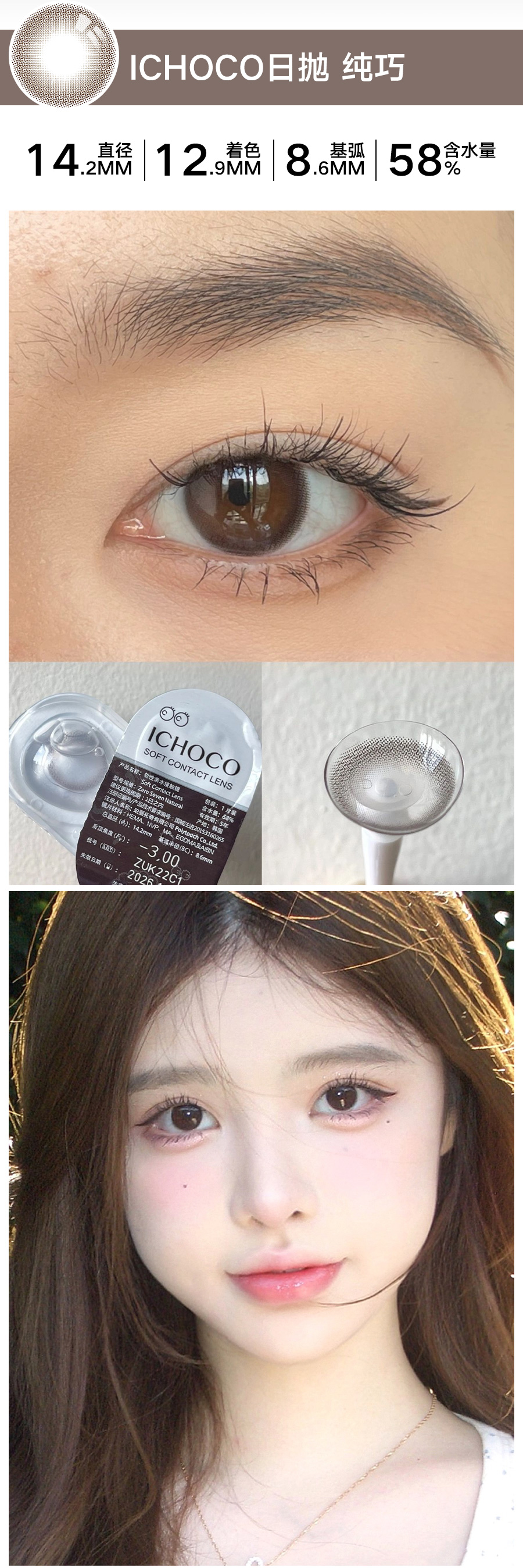 ICHOCO纯巧日抛 | 艺考眼 素颜可佩戴 着色直径12.9mm 1盒10片