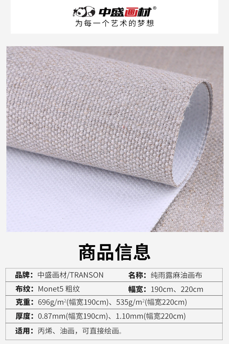 中盛画材 Monet5粗纹涂层布 雨露麻涂层油画布