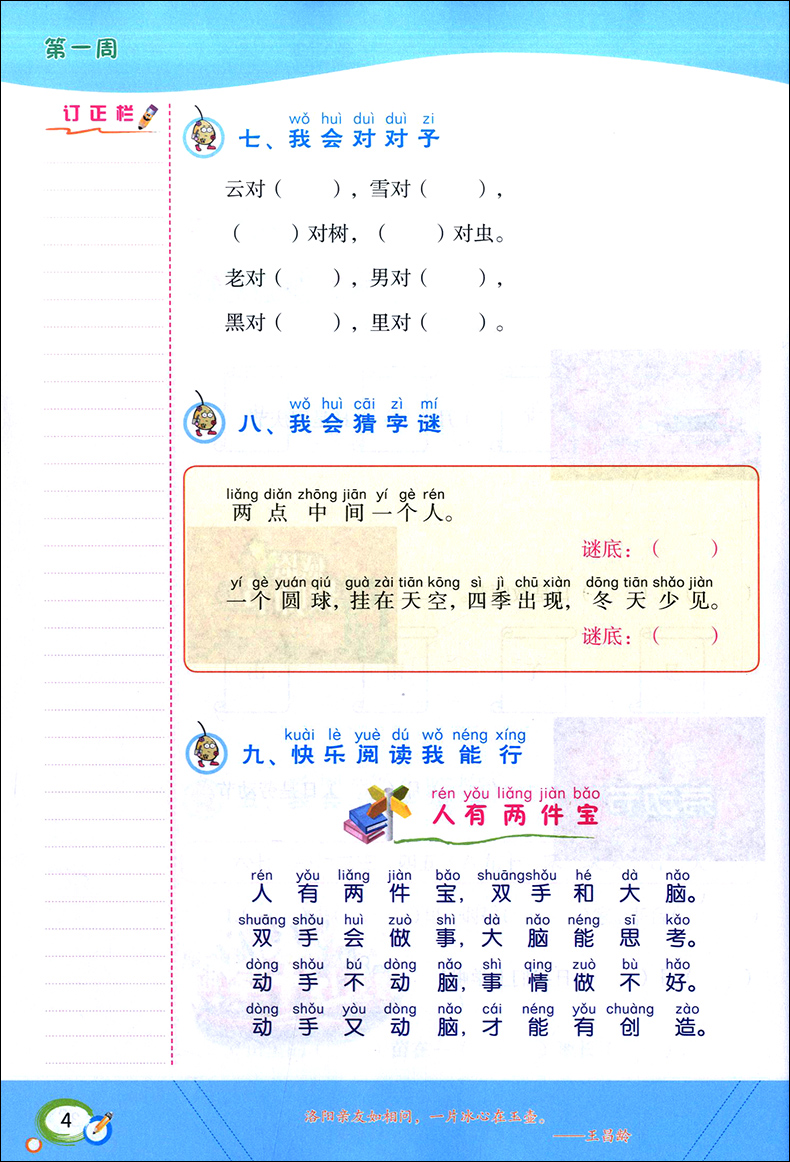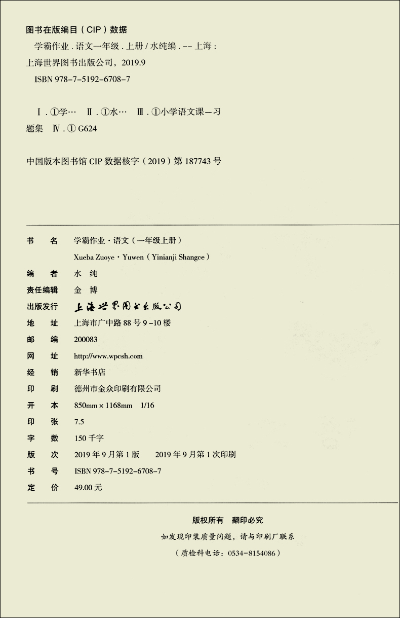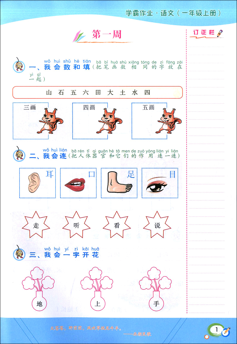 学霸作业 一年级上册/1年级第一学期 语文 含测试卷 与新教材配套五四学制上海新教材配套