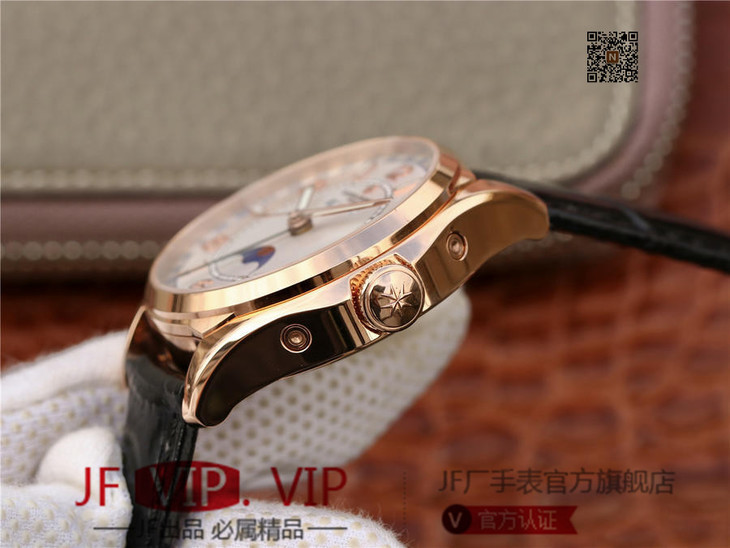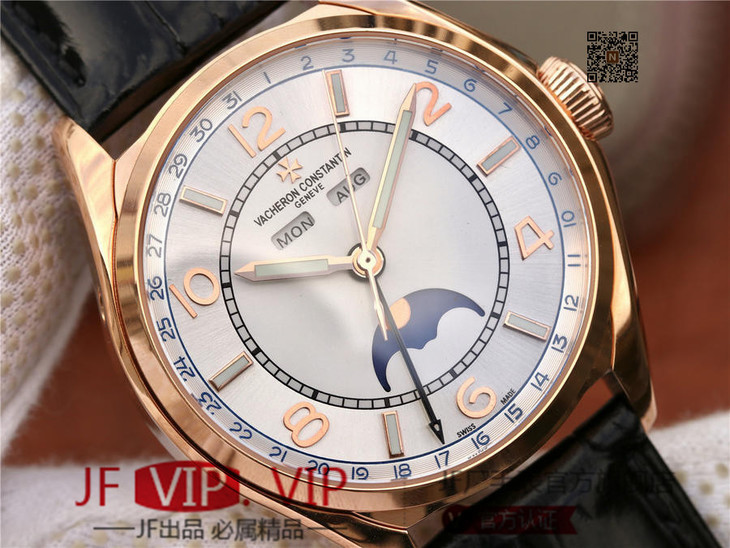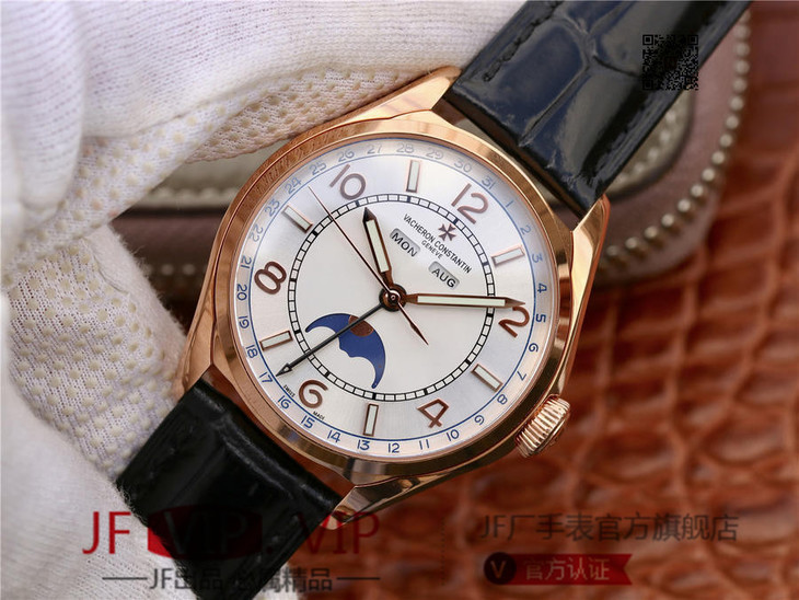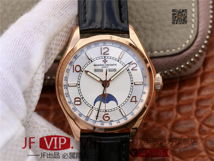 江诗丹顿伍陆之型FIFTYSIX 4000E/000A-B439 这款手表设计表达了康斯坦丁在1950年代展示的特别丰富的创造力 表壳混合了圆形表壳和龟背表壳的特点 夜光效果强 具有运动特点 数字时标和夜光条交错 装饰感时尚 采用日内瓦印记复刻2460 QCL/1 多功能自动机械机芯 40mm 精钢壳 原装折叠扣 背透 进口意大利小牛皮