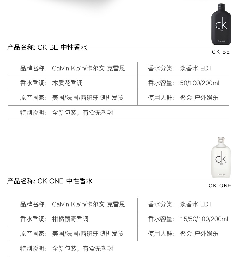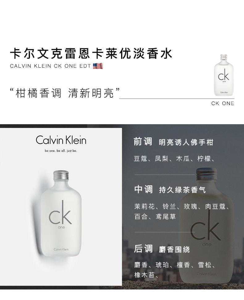 【中欧班列精选】卡尔文克雷恩CK ck one be中性淡香水100ml/200mlYZ